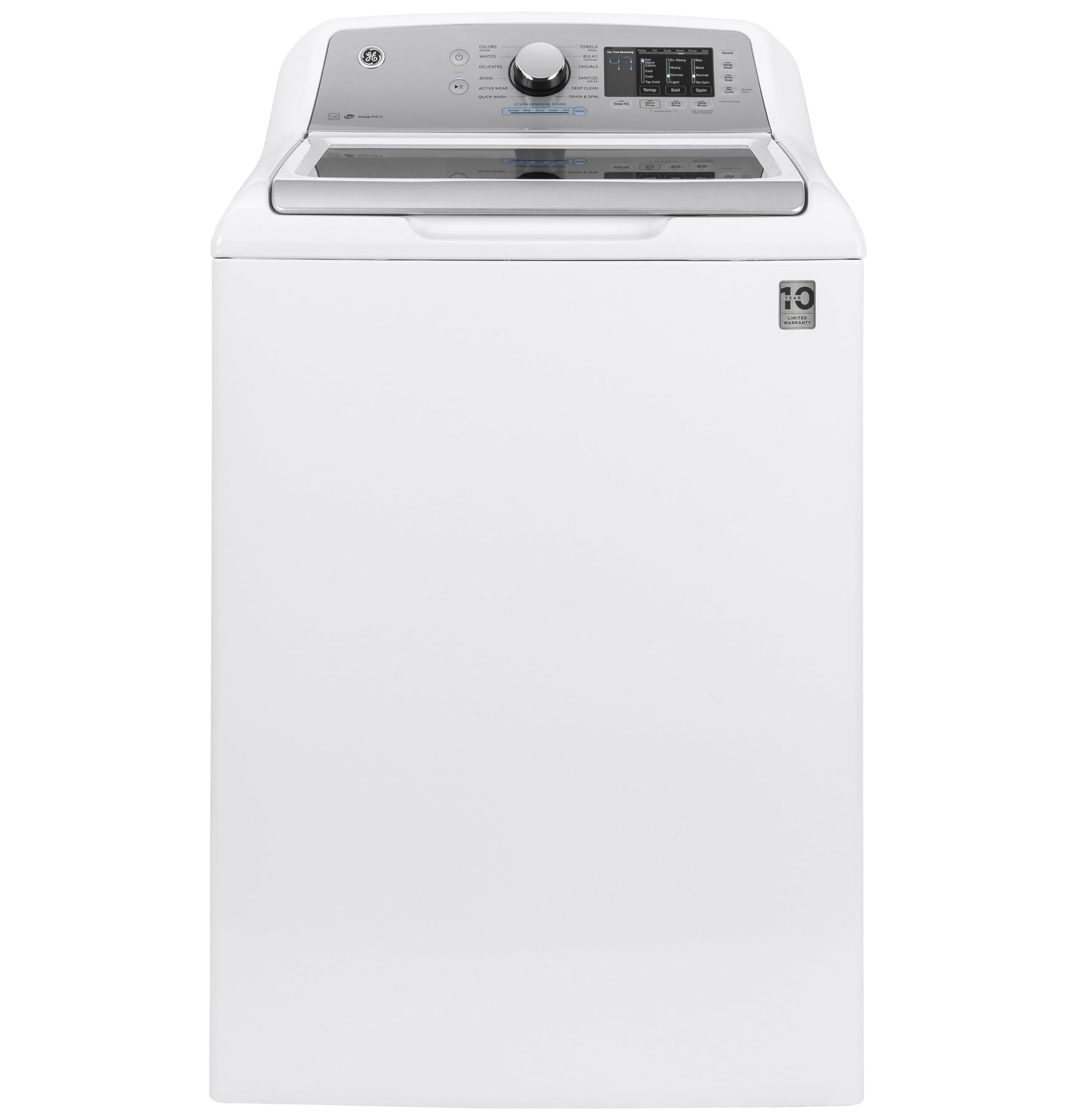 This GE 4.6-cu ft high-efficiency top-load washer delivers powerful cleaning with a dual-action agitator and ENERGY STAR certification. FlexDispense handles liquid, powder, softener, and detergent packs, while features like Deep Fill and Sanitize with Oxi tailor cycles for tough loads.
