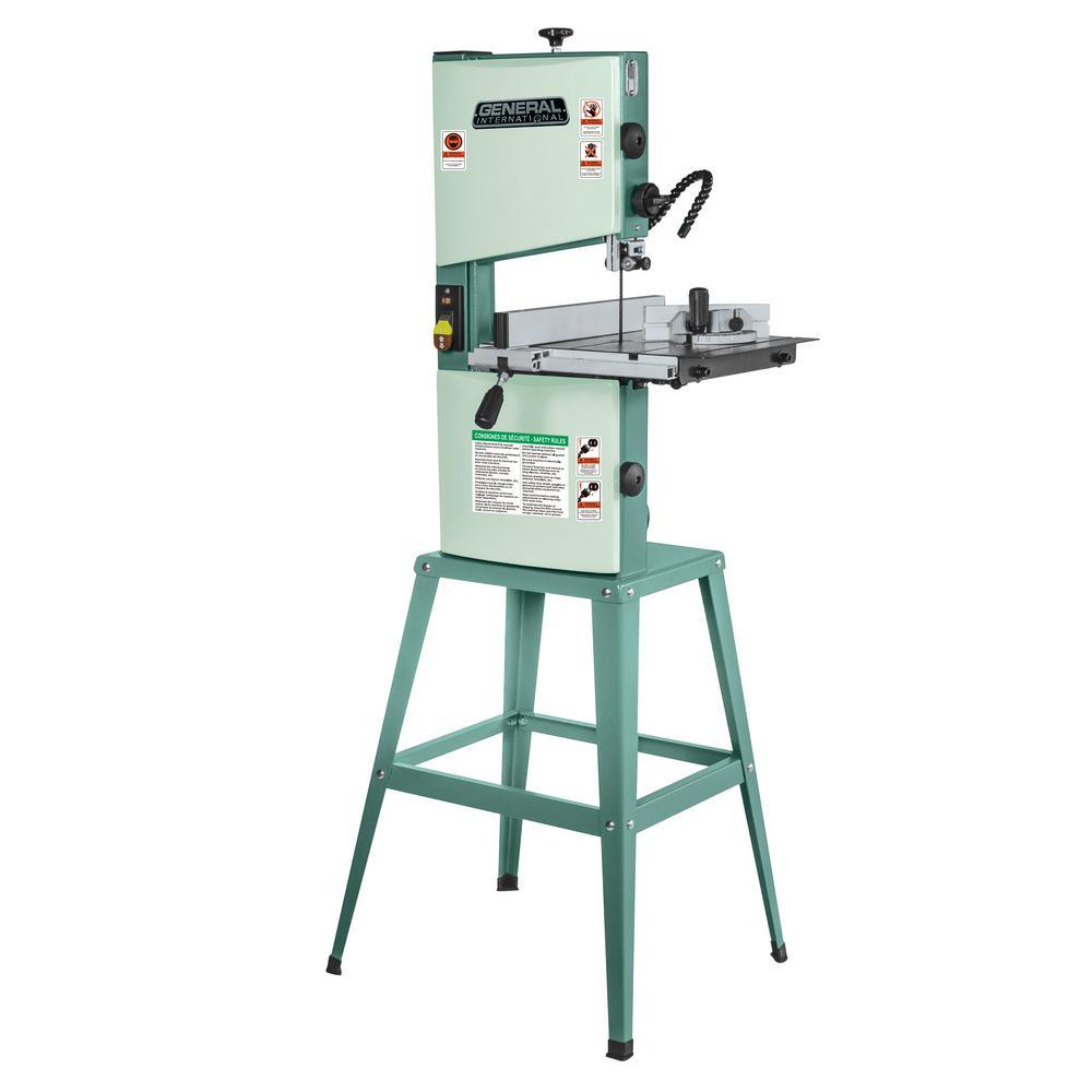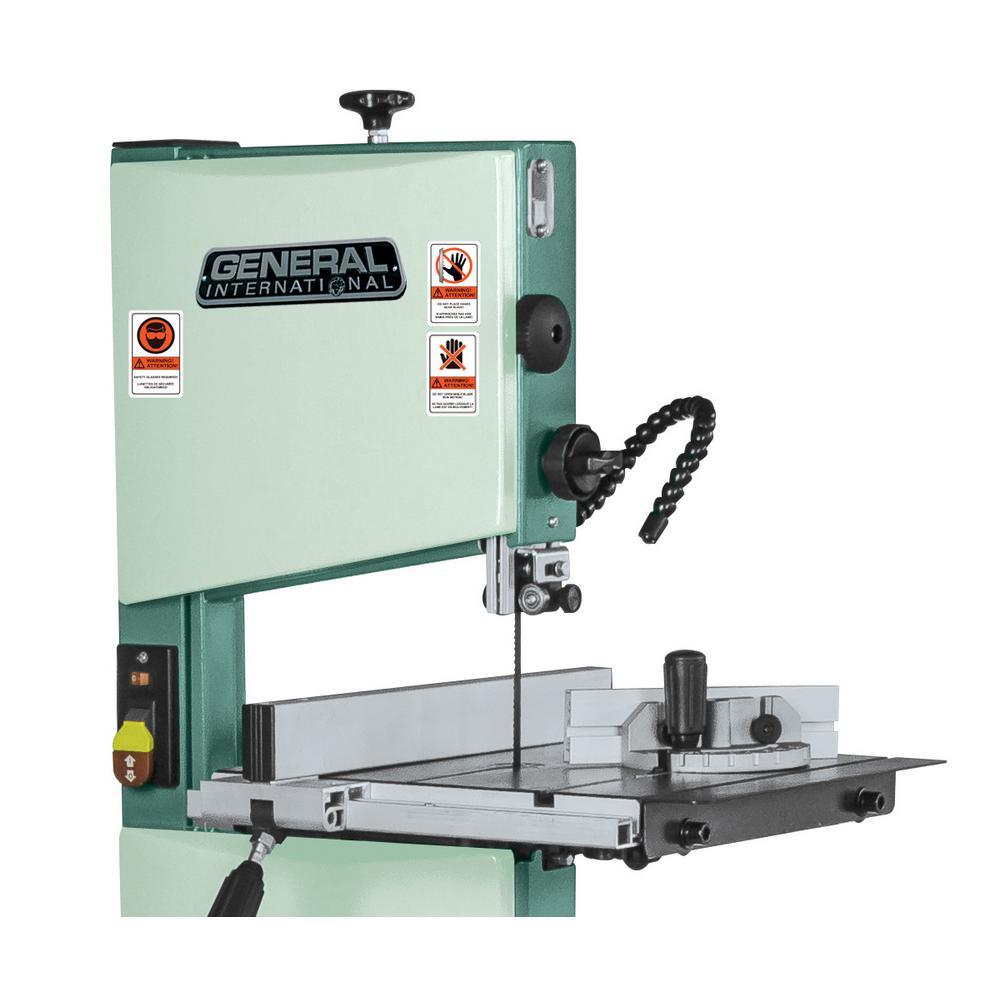 The General International 90-030 M1 120-Volt 10 in. band saw is equipped with a powerful 3.4 Amp motor to rip through hardwoods. Band-sawing produces uniform cutting action as a result of an evenly distributed tooth load. The large 13-3/8 in. x 13-1/8 in. work table can accommodate most jobs with a large cutting capacity of 4-1/16 in. for cutting irregular shapes and ripping lumber into thinner pieces, novice woodworkers will find the General 90-030 M1 10 in. Band Saw with flexible LED work light is essential for your workshop. You'll cut through a variety of wood materials with the quick release blade tension that changes blades quickly. Make quick angle and height changes with the rack and pinion adjustable table. EZ View Blade Tracking lets you easily align the blade. Other features include a rip fence for straight cuts and a miter gauge for cross cuts. The dust port keeps your work area dust-free, while the LED work light adjusts so that you can see exactly what you're doing. Includes 2-year limited warranty.