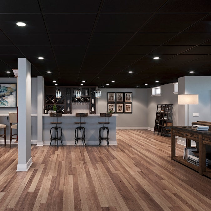 Experience timeless elegance with the Stucco Pro Black PVC Drop Ceiling Tiles by Genesis. Designed for easy installation, these 2-ft x 2-ft tiles bring a sleek, modern finish to any space. Made from durable PVC, they are both moisture-resistant and Class A fire rated, ensuring longevity and safety.