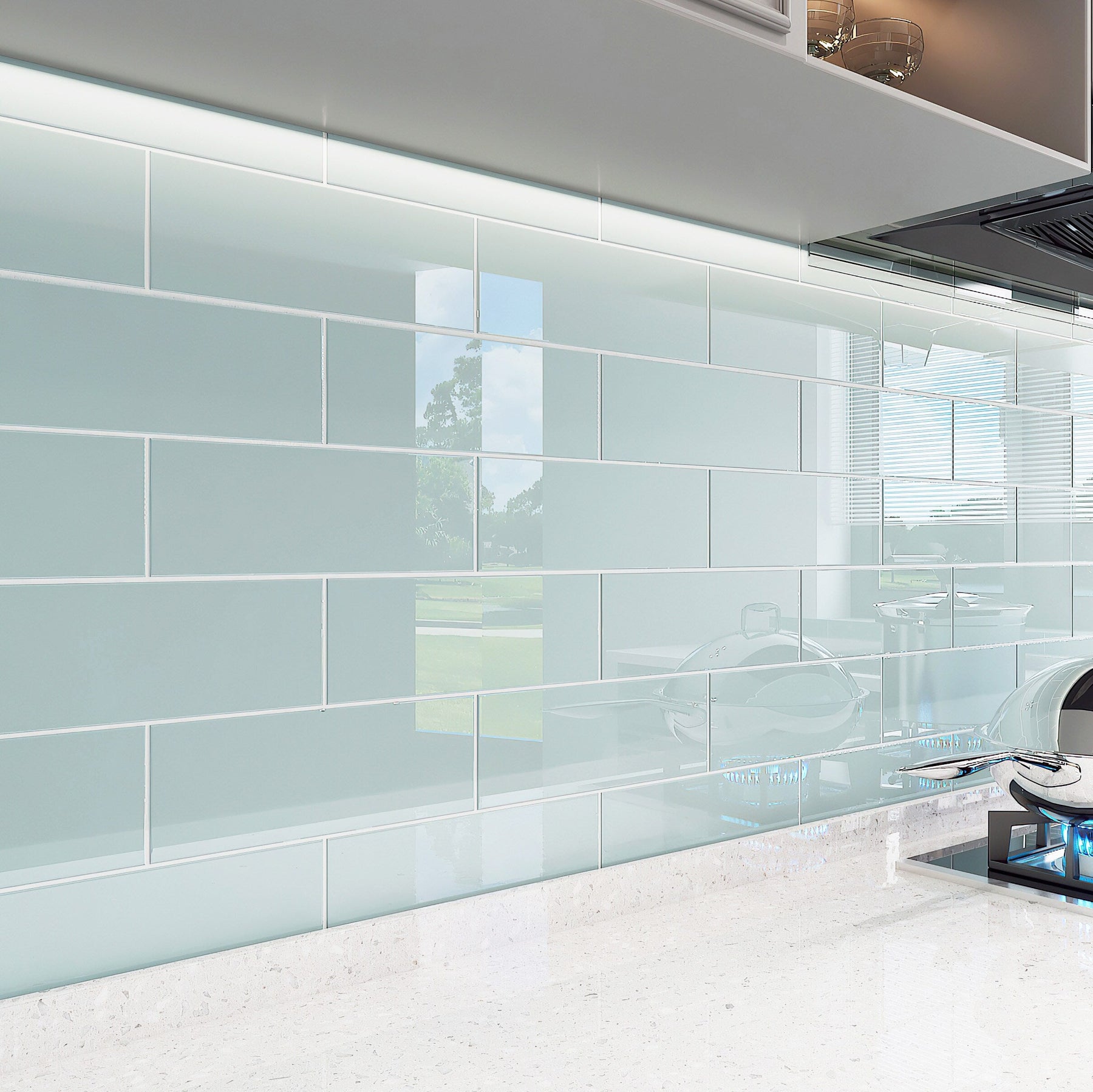 Giorbello Classic Premium Baby Blue 4-in x 12-in Glossy Glass Subway Wall Tile (5-sq. ft/ Carton)
