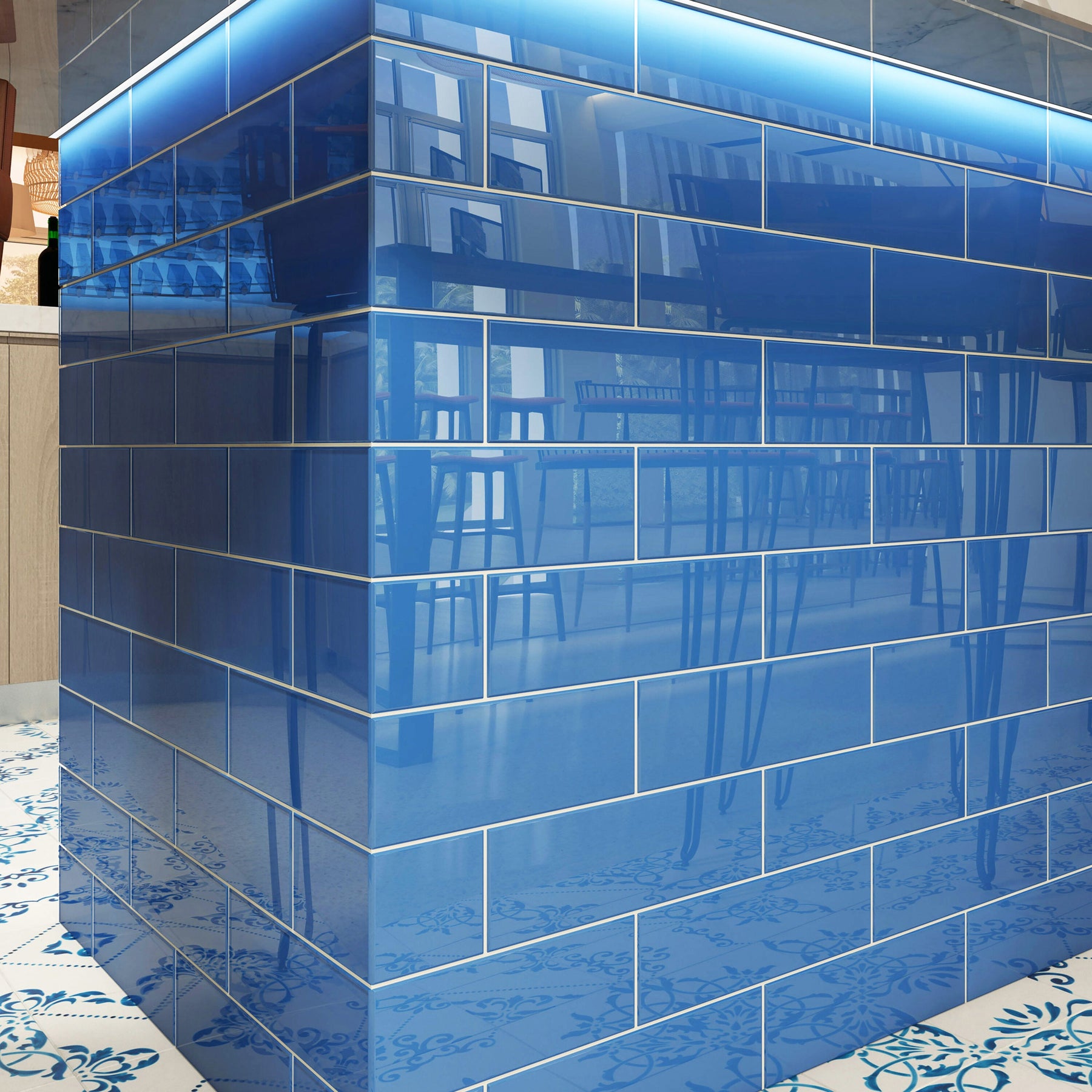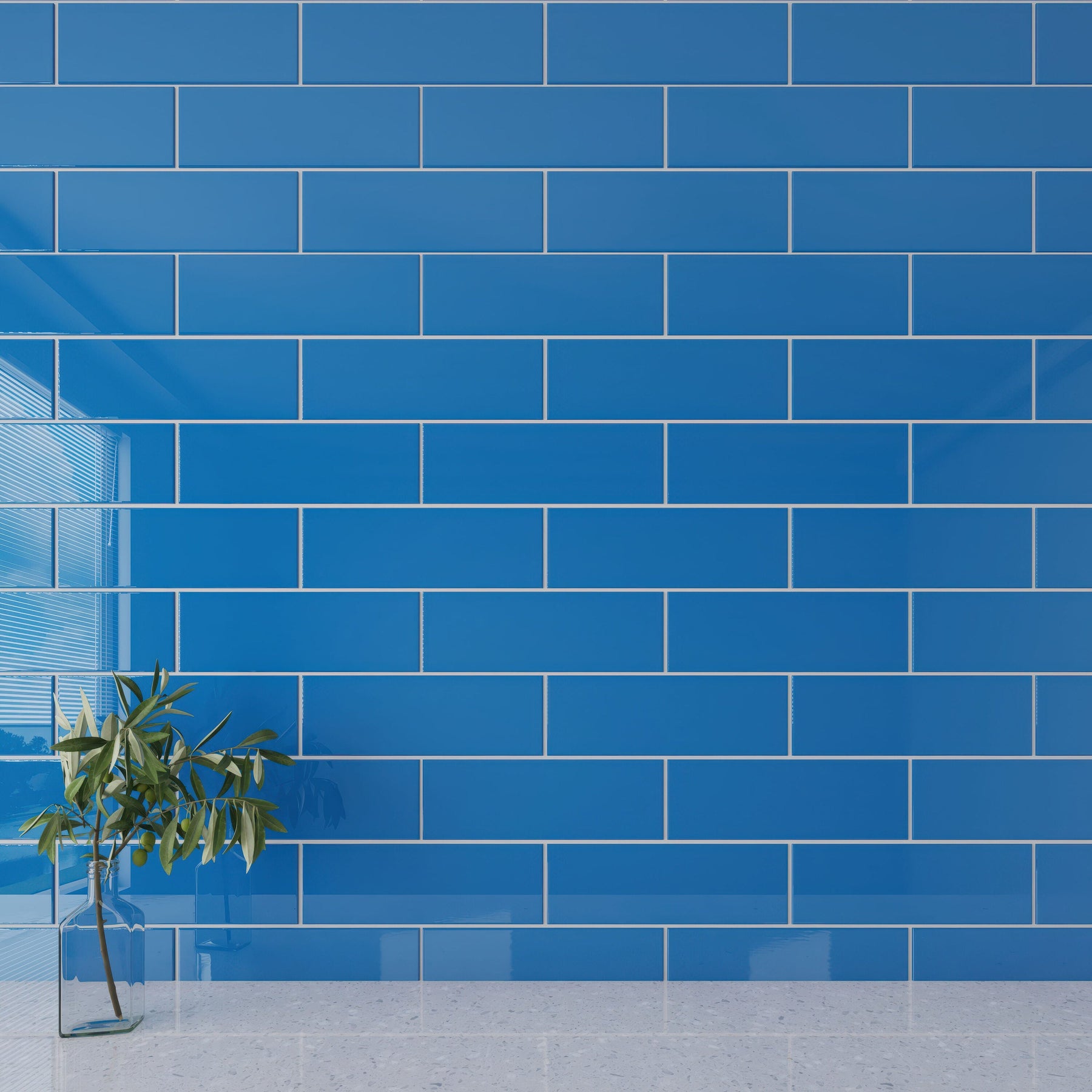 Giorbello Classic Premium Mediterranean Blue 4-in x 12-in Glossy Glass Subway Wall Tile (5-sq. ft/ Carton)