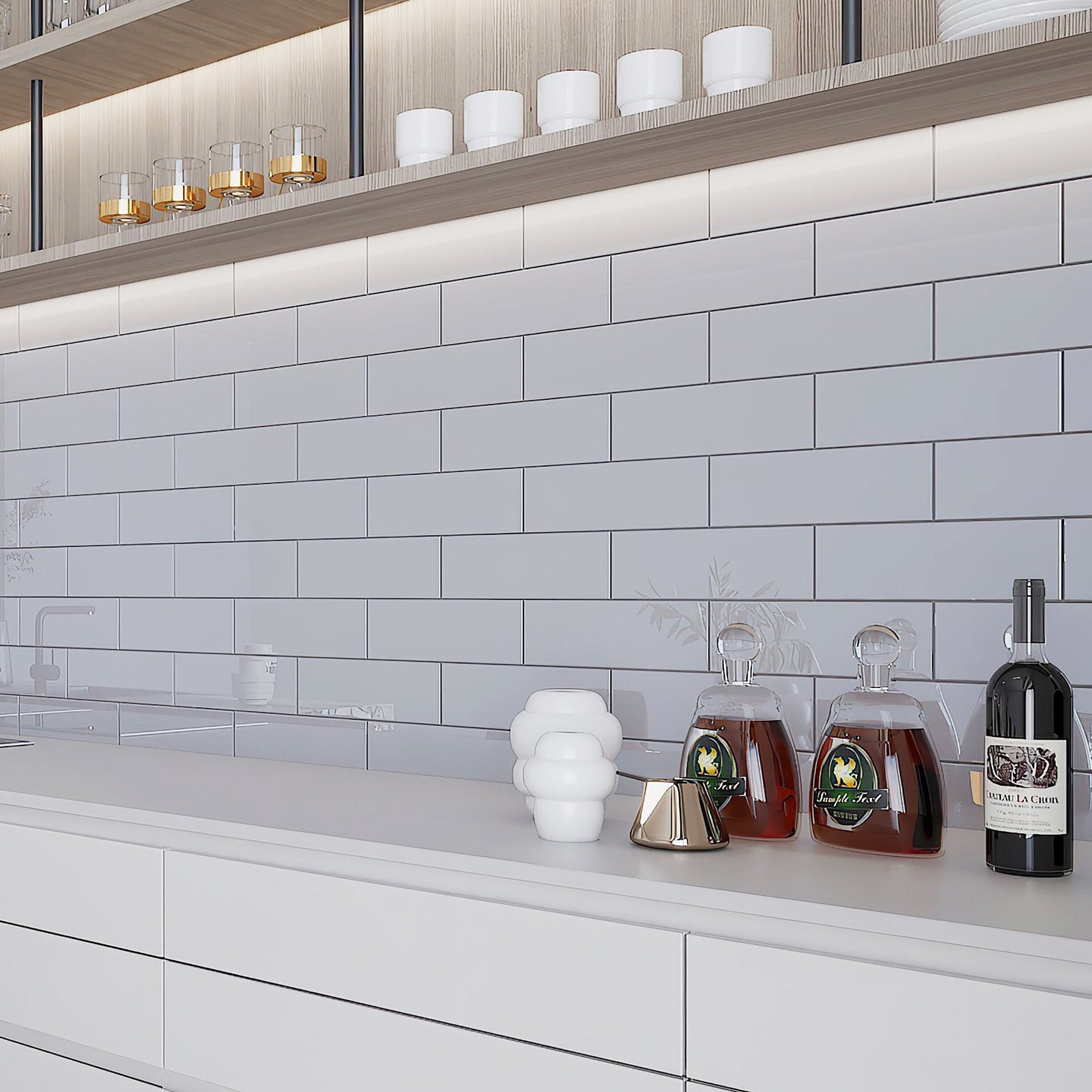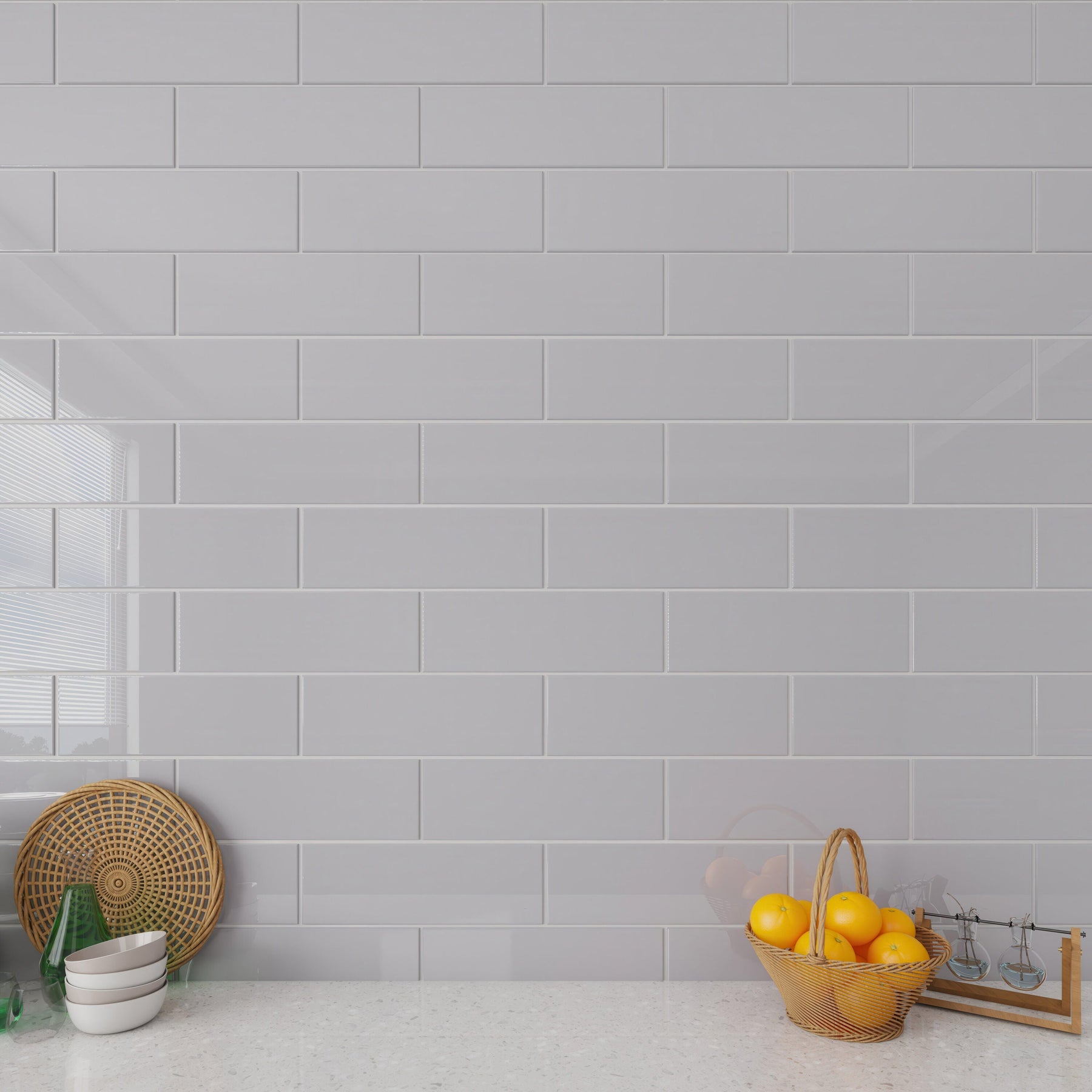 Embrace elegance and sustainability with Giorbello's Lavender Gray Glass Subway Tiles—order now to redefine your spaces!
