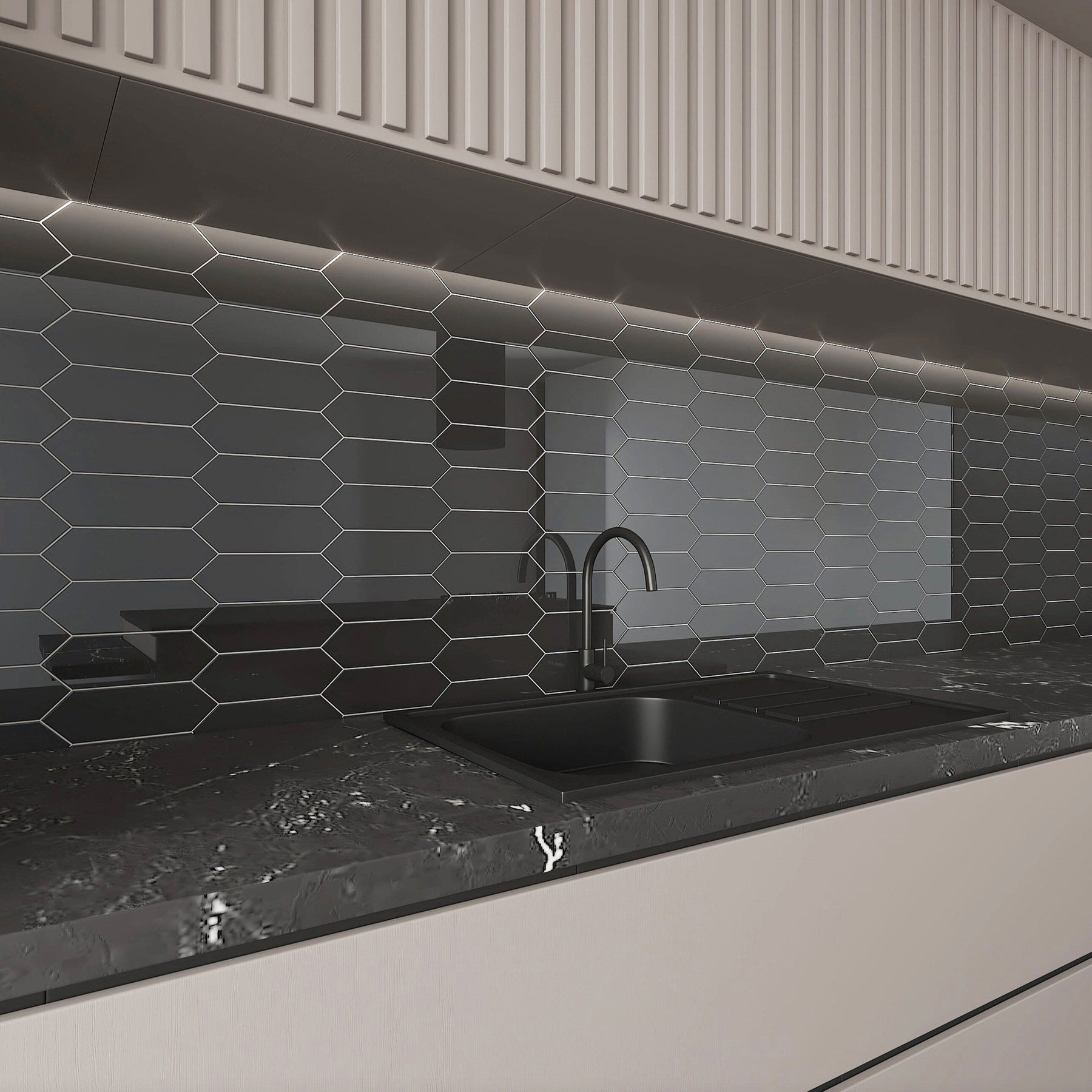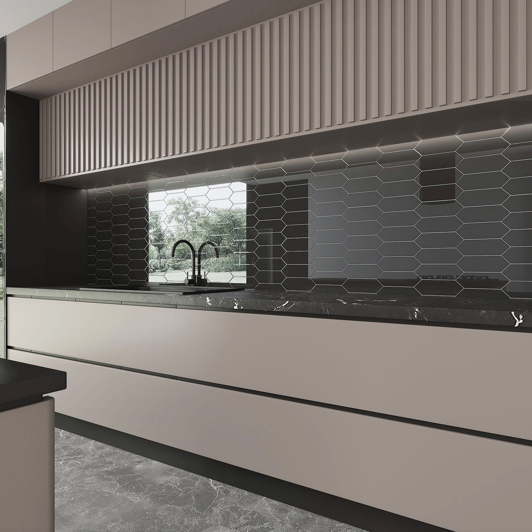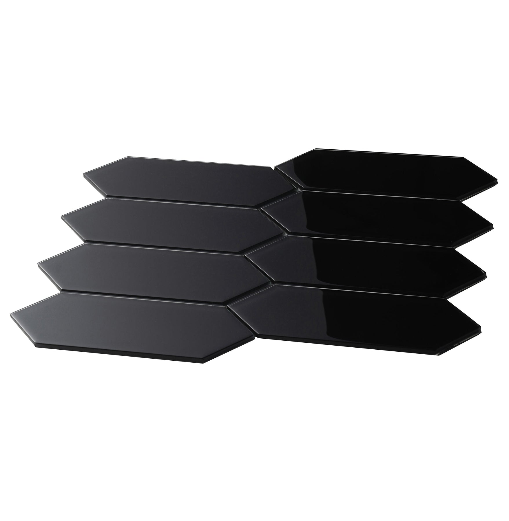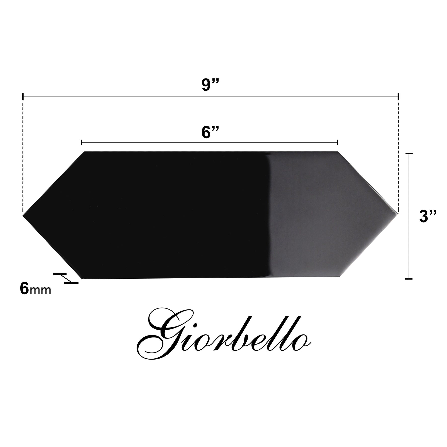 Giorbello Picket Hexagon Black 3-in x 9-in Glossy Glass Subway Wall Tile (5.8-sq. ft/ Carton)
