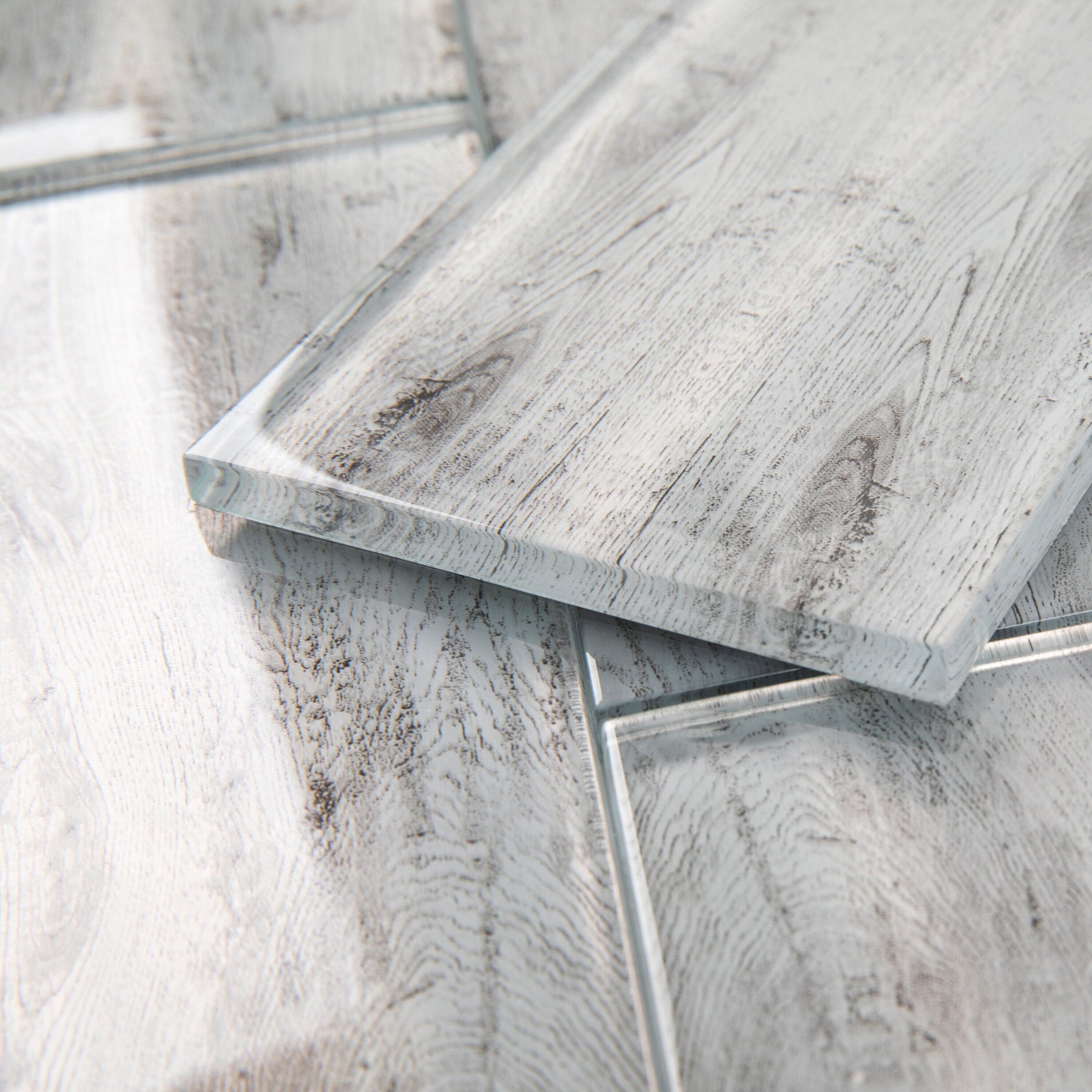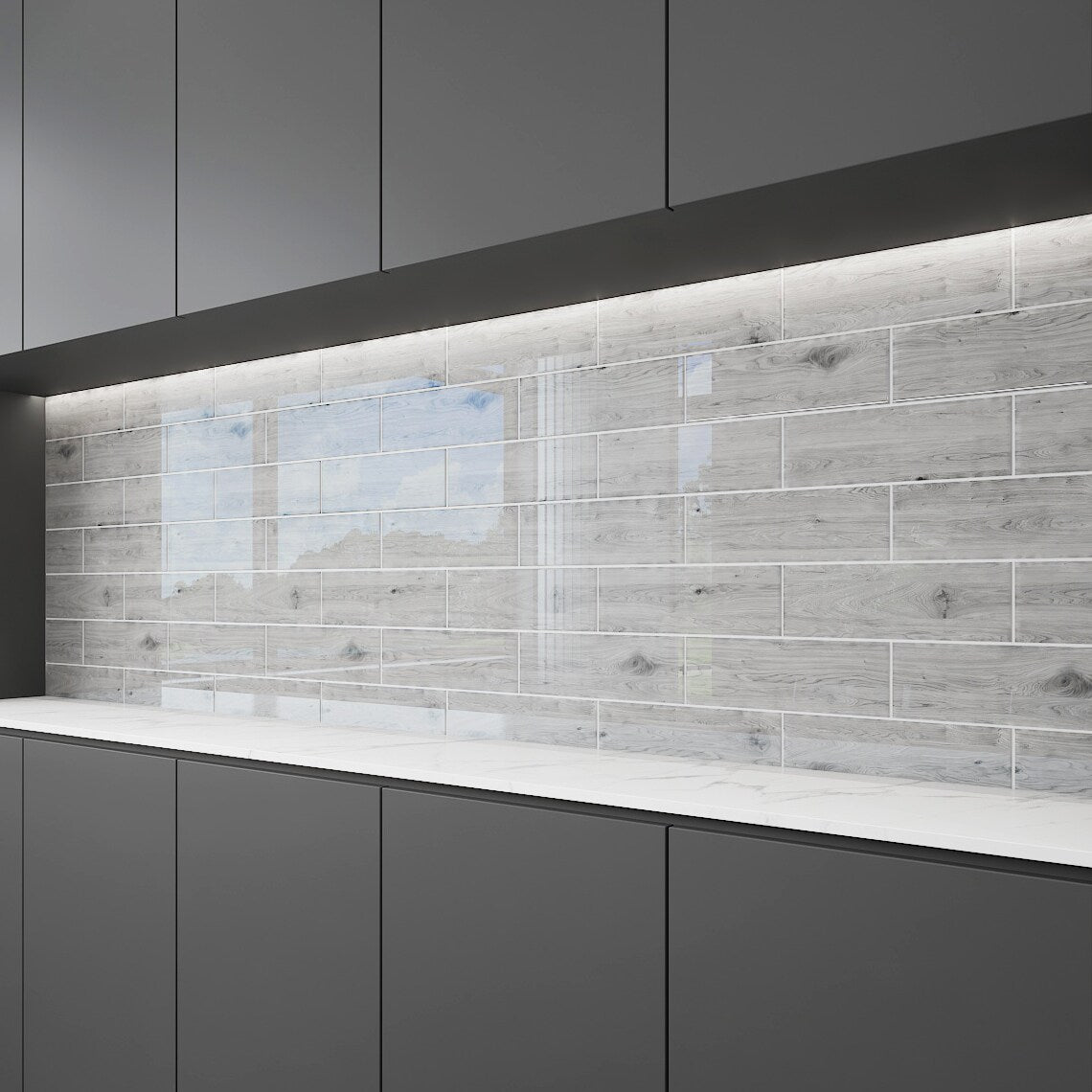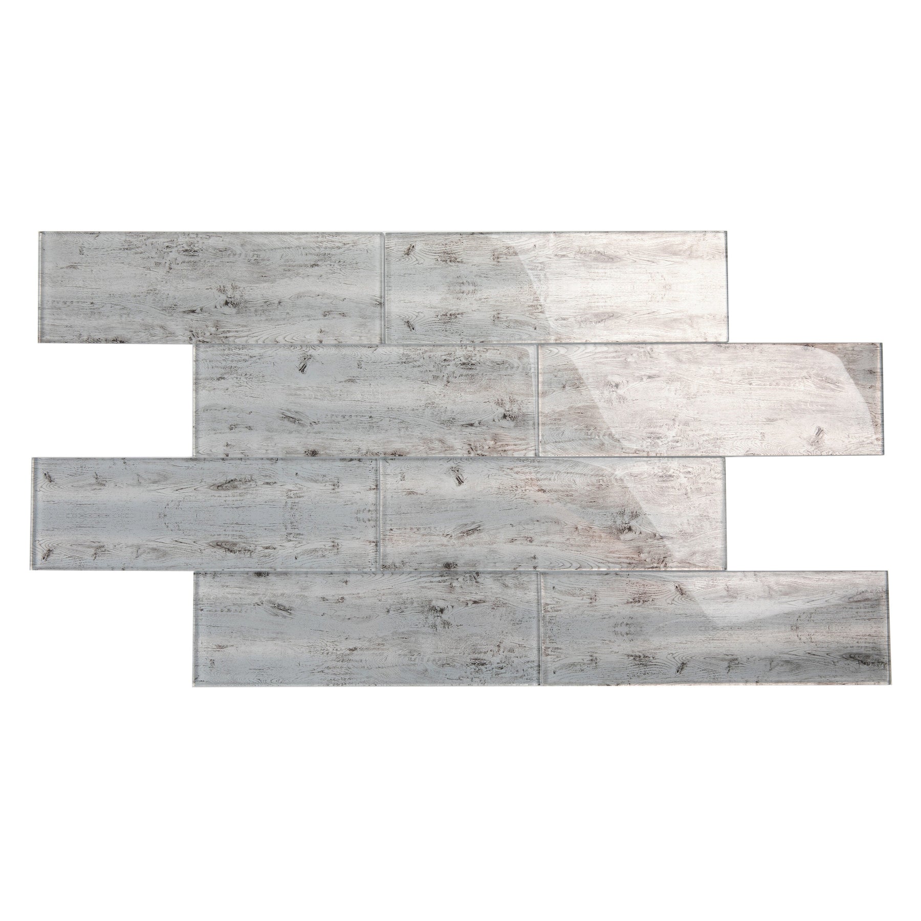 Giorbello Silver Cedar 4-in x 12-in Glossy Glass Wood Look Wall Tile (5-sq. ft/ Carton)