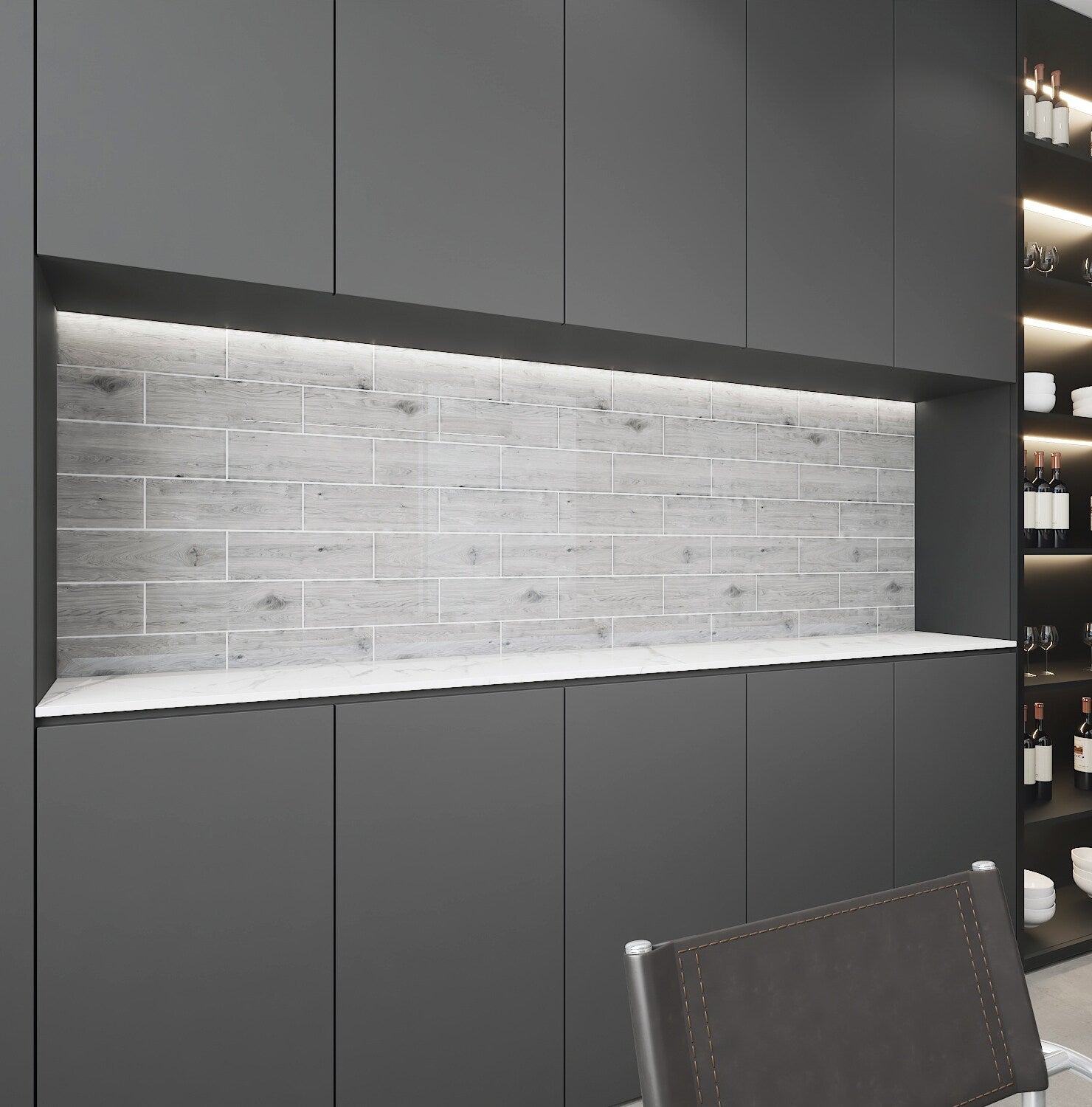 Imagine a space where light dances off walls, creating an ever-changing play of reflections that enlivens the ambience. The Giorbello Silver Cedar Glass Wall Tile offers this transformative magic, seamlessly blending the serenity of a wood-look design with a sleek, glossy finish. Install them in a kitchen to capture the essence of modern sophistication or in a luxurious bathroom for a spa-like retreat. These tiles are not just adornments; they are a testament to exquisite taste and sustainable elegance.