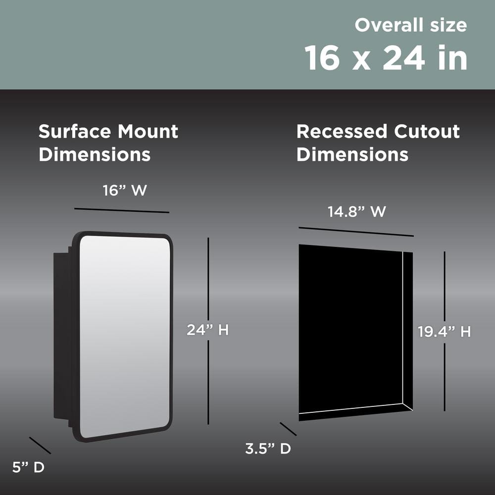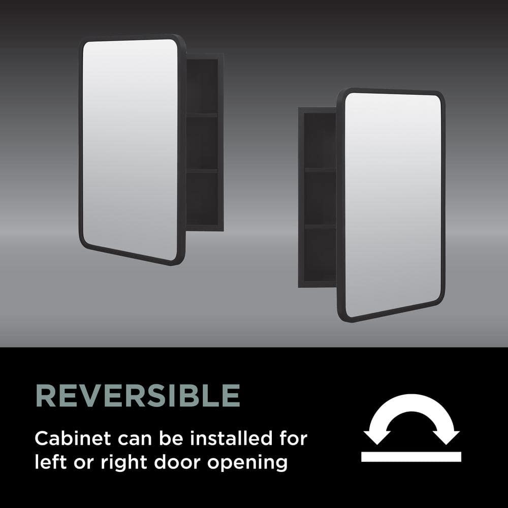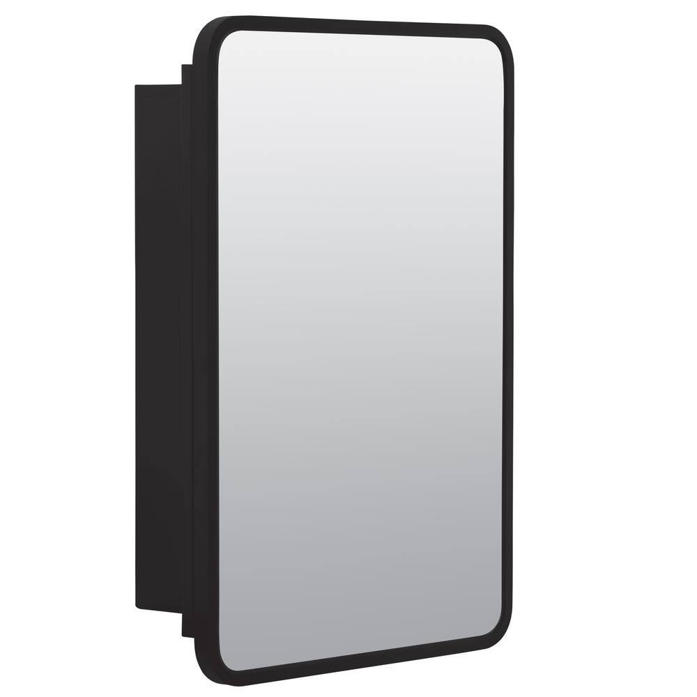 Glacier Bay 16 in. W x 24 in. H Rounded Corner Rectangular Matte Black Medicine Cabinet with Mirror