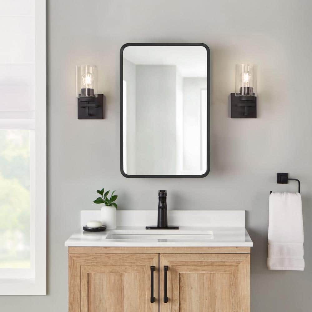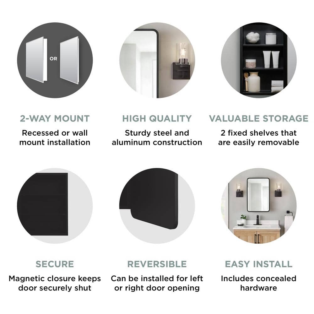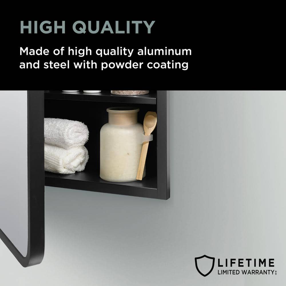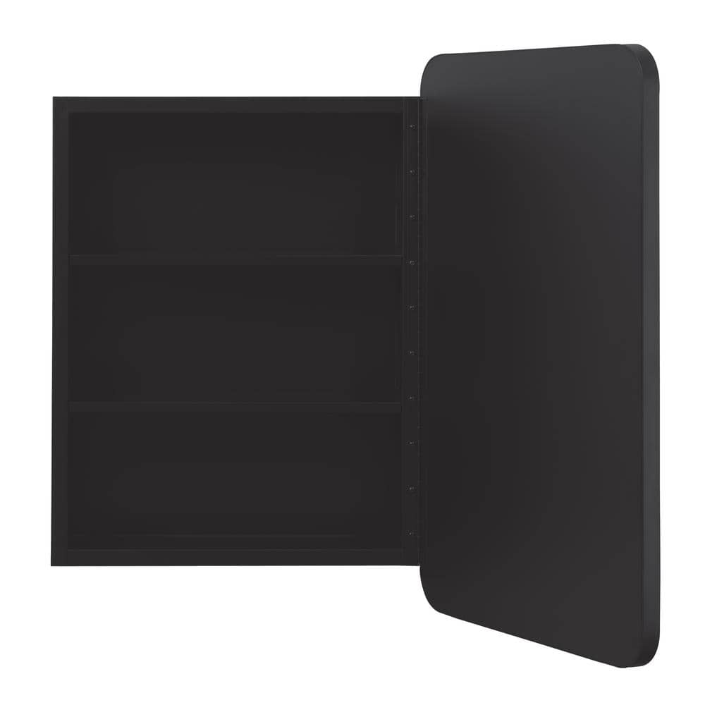 Glacier Bay 16 in. W x 24 in. H Rounded Corner Rectangular Matte Black Medicine Cabinet with Mirror