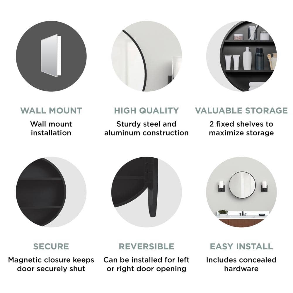Refresh your bathroom with the stylish and functional Glacier Bay Round Matte Black Medicine Cabinet, and enjoy organized elegance daily.