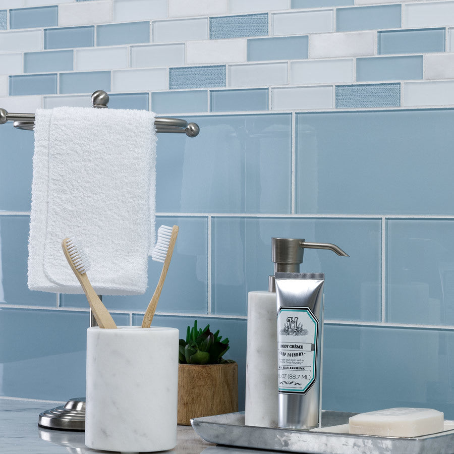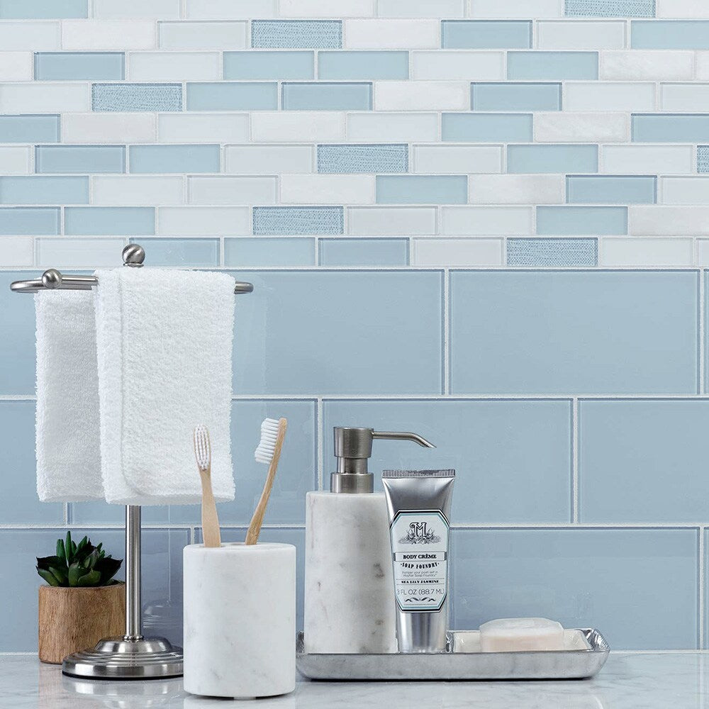 Bring a fresh, modern glow to your walls—add Skylight Subway glass tiles to your project today.