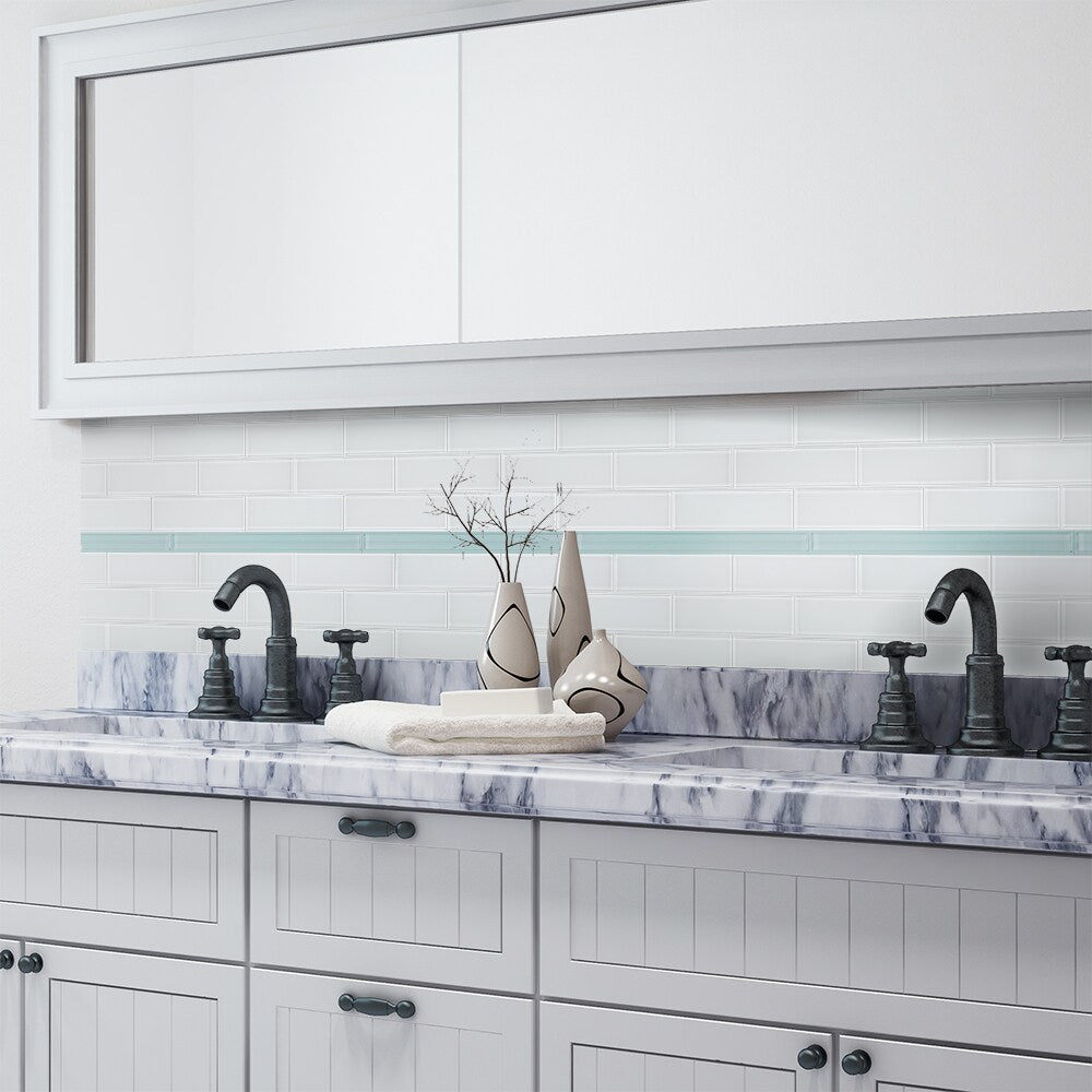 This glass pencil liner brings a cool, airy note that effortlessly elevates any tiled wall. Its slim, glossy profile creates a refined break in pattern—an elegant pause that highlights texture and tone. Style it as a continuous ribbon across a backsplash or stack it in pairs to frame niches for a tailored look. A subtle luxury essential that makes everyday spaces feel artfully composed.