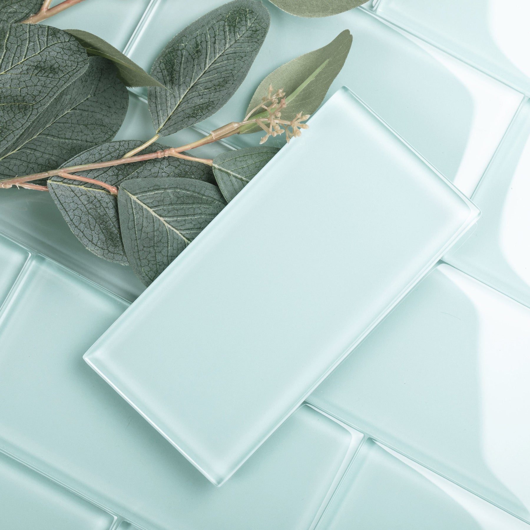 Giorbello (Sample) 3x6 Glass Subway Tiles Baby Blue 3-in x 6-in Glossy Glass Brick Subway Wall Tile