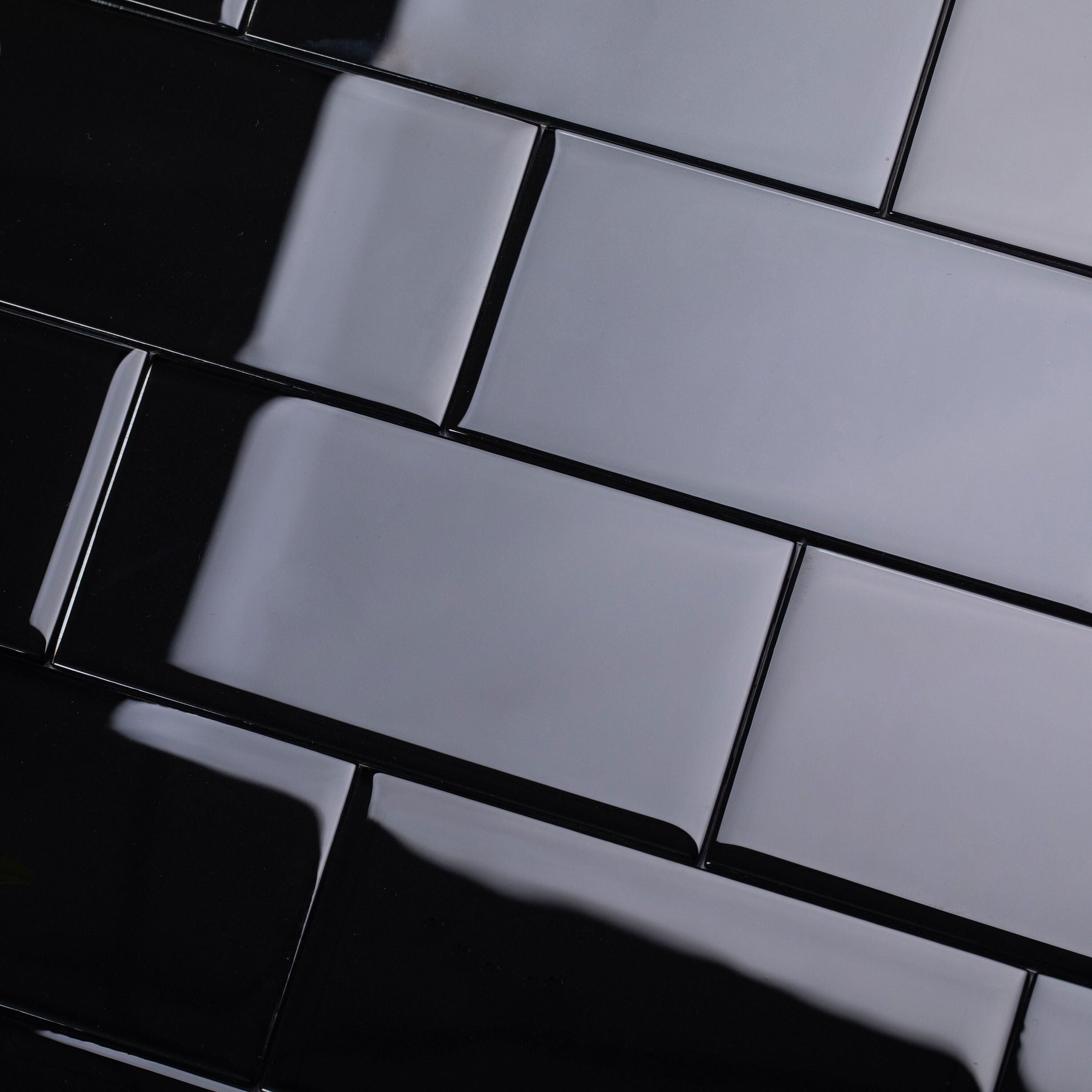 Giorbello (Sample) 3x6 Glass Subway Tiles Black 3-in x 6-in Glossy Glass Brick Subway Wall Tile