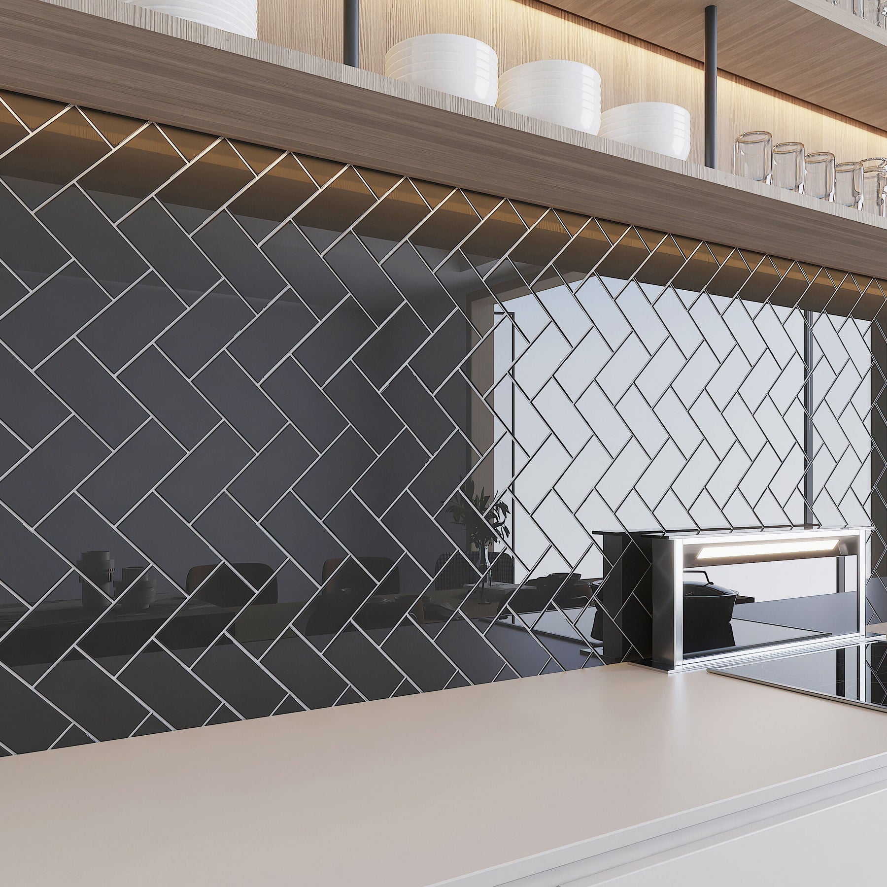Elevate your next home project with the timeless elegance of Giorbello's Black Glass Subway Tiles today!
