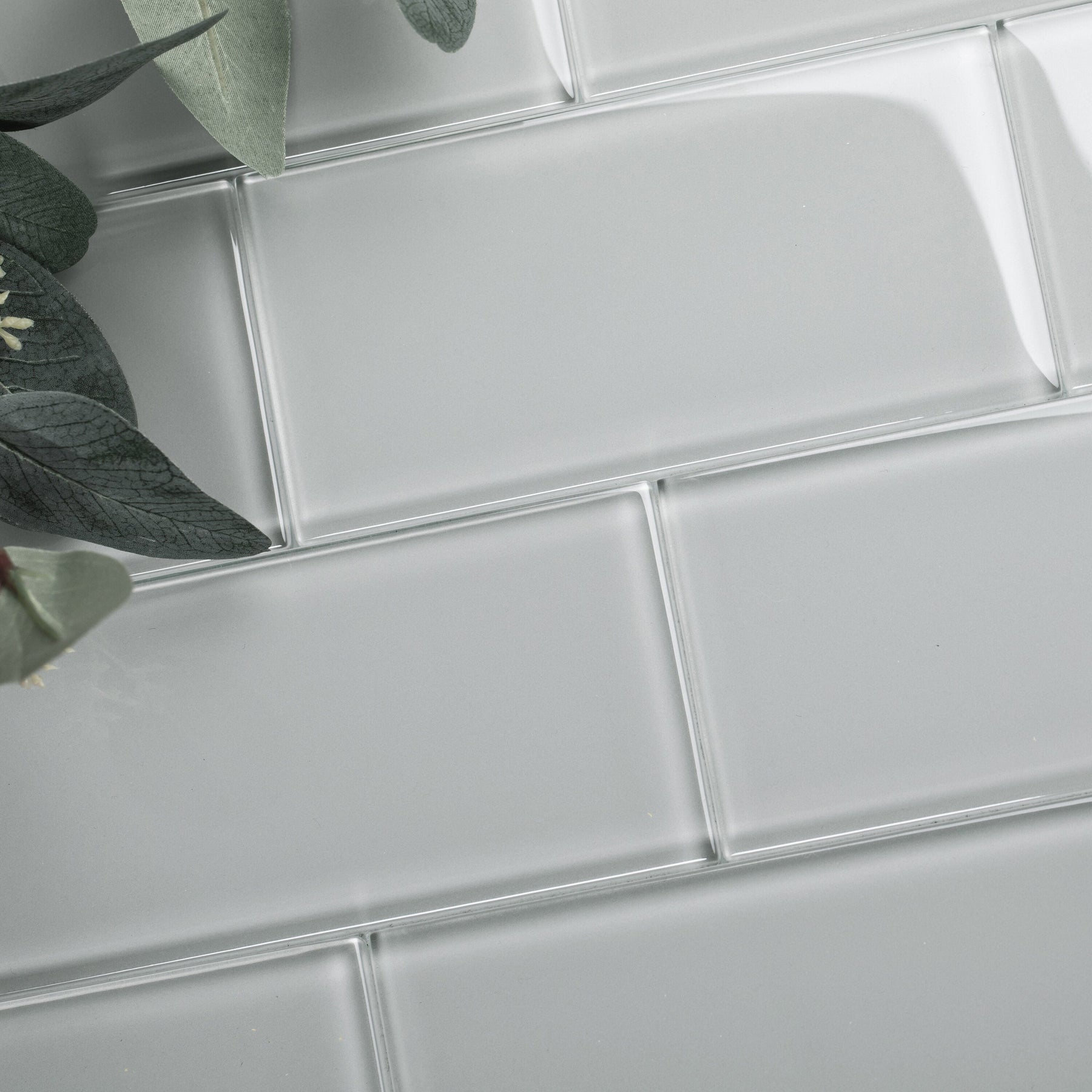 Giorbello (Sample) 3x6 Glass Subway Tiles True Gray 3-in x 6-in Glossy Glass Brick Subway Wall Tile