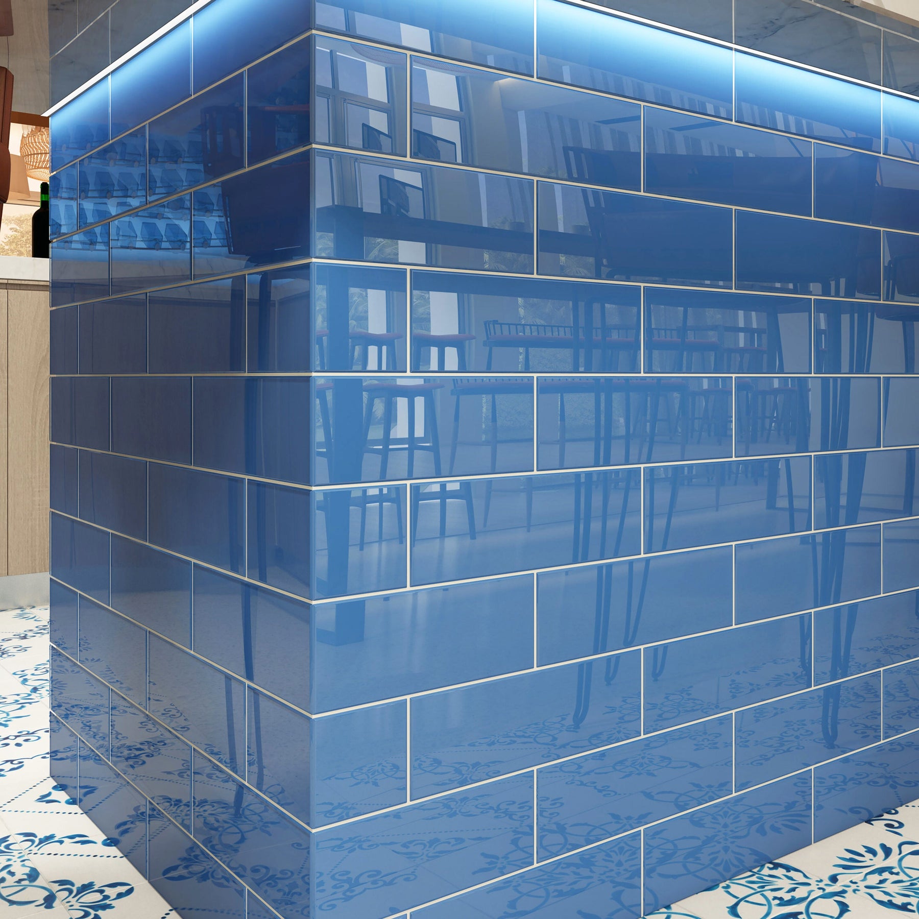 Giorbello (Sample) 4x12 glass subway tiles Mediterranean Blue 4-in x 12-in Glossy Glass Brick Subway Wall Tile