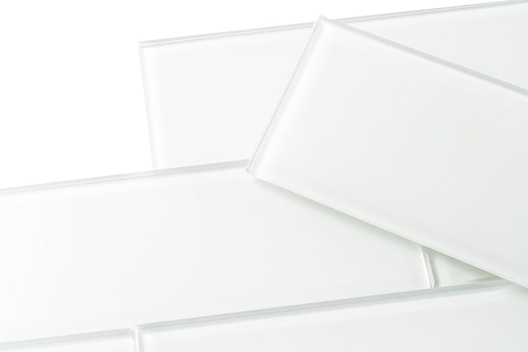 Giorbello (Sample) Glass Subway White 3-in x 9-in Glossy Glass Tile