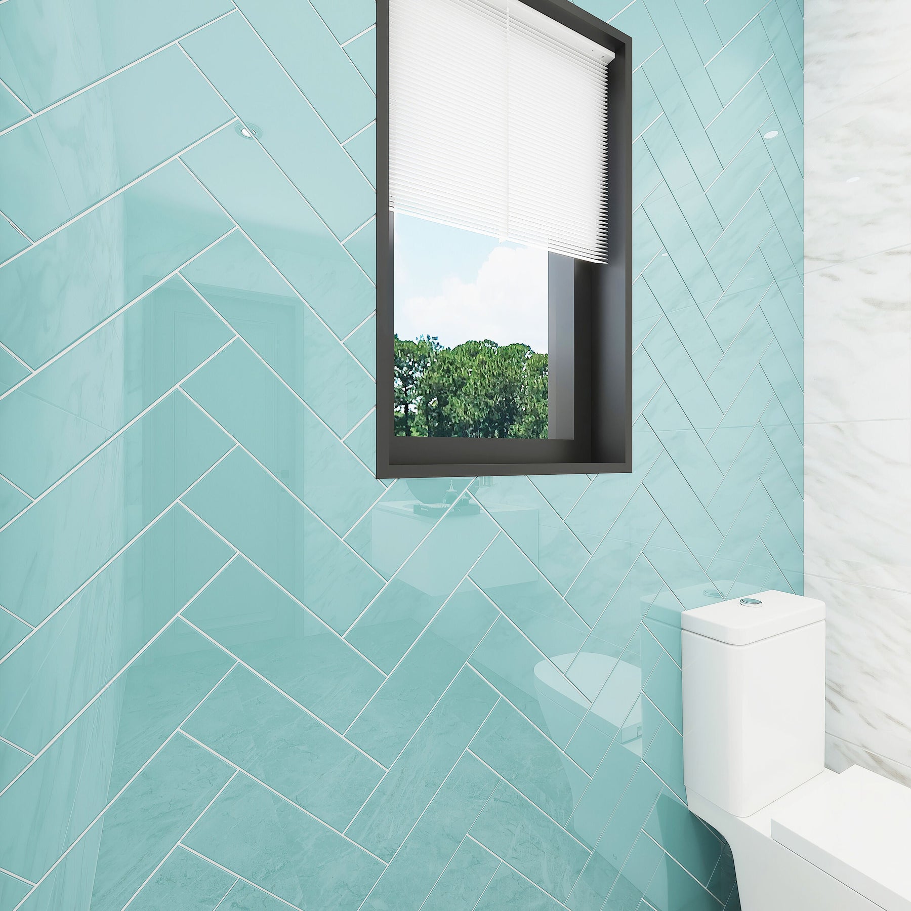 Experience the transformative elegance of teal glossy glass tiles by ordering your sample today.