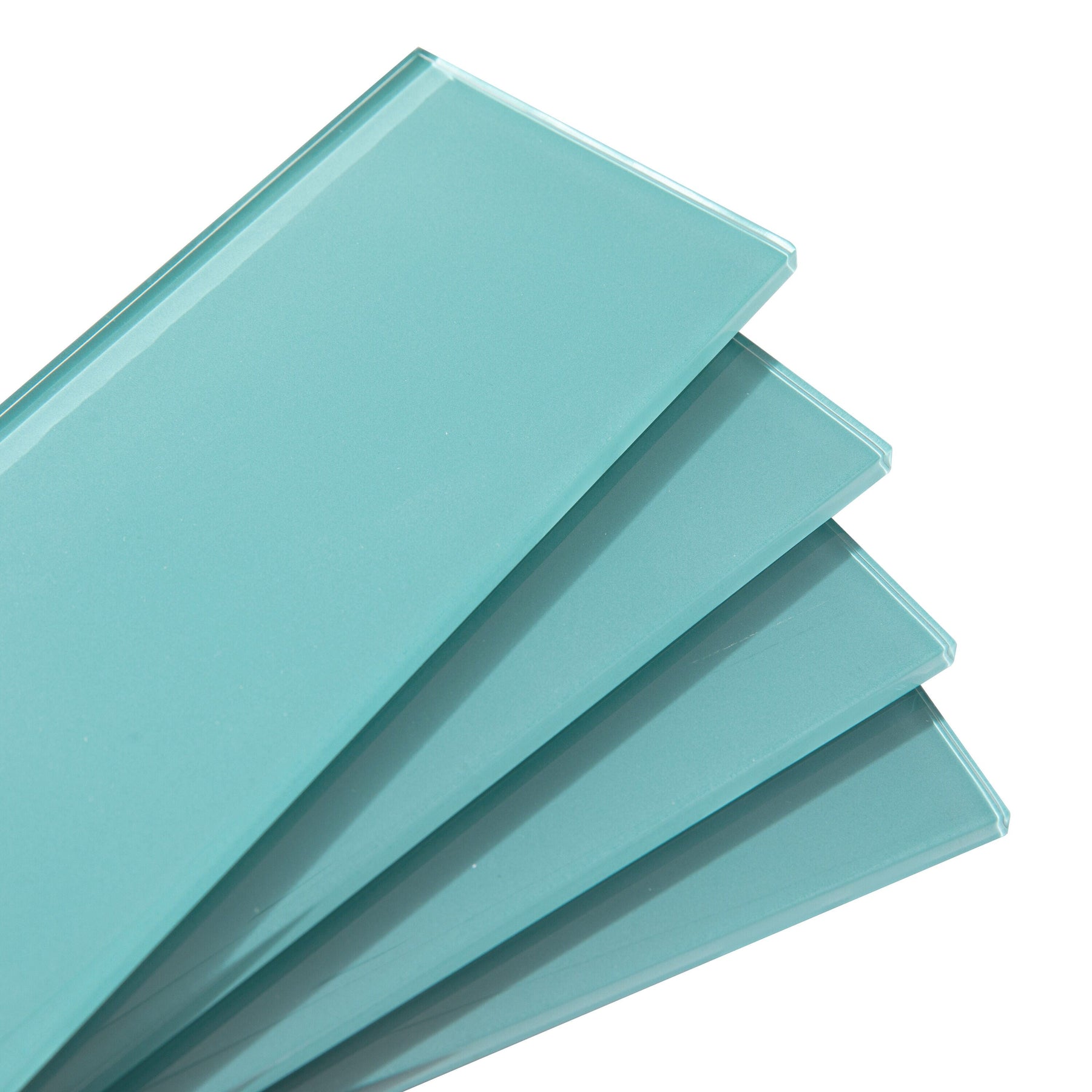Giorbello (Sample) Teal 3-in x 9-in Glossy Glass Subway Wall Tile