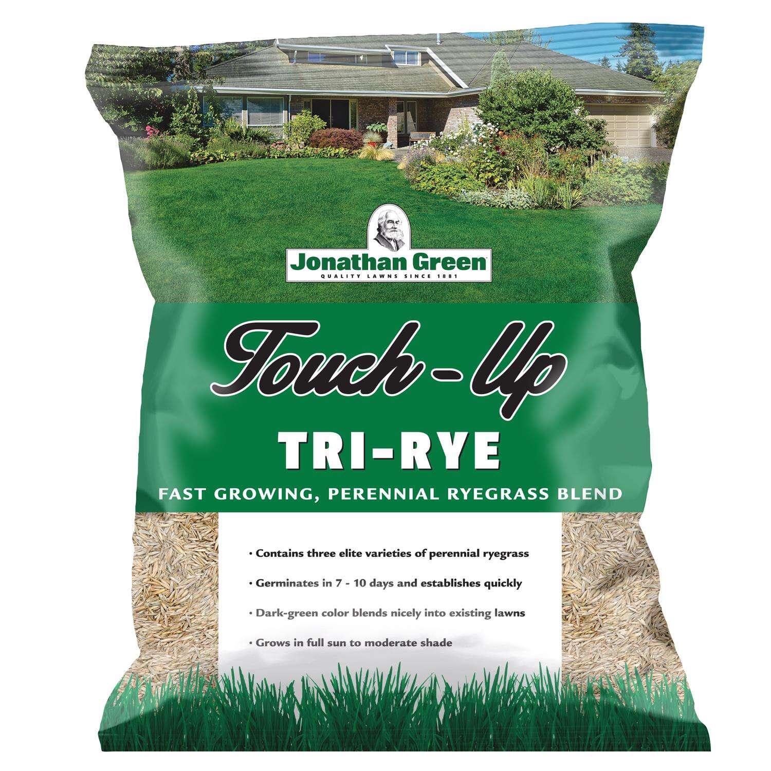 Jonathan Green Touch-Up Tri-Rye Perennial Ryegrass is a 100% premium perennial ryegrass blend. The three perennial ryegrasses in this mixture are all dark-green in color and fast to germinate so they fill in bare spots and thicken the lawn quickly. This mixture has been used on golf courses to overseed fairways, tees and roughs for years. This product is also used in the fall to overseed warm-season grasses such as bermudagrass which goes dormant and turns brown when the weather turns cold. Touch Up provides a green carpet during the winter months and recedes when the warm season grasses start growing again during spring. Touch Up is very tolerant of heavy traffic situations and contains beneficial endophytes making the lawn naturally insect resistant.