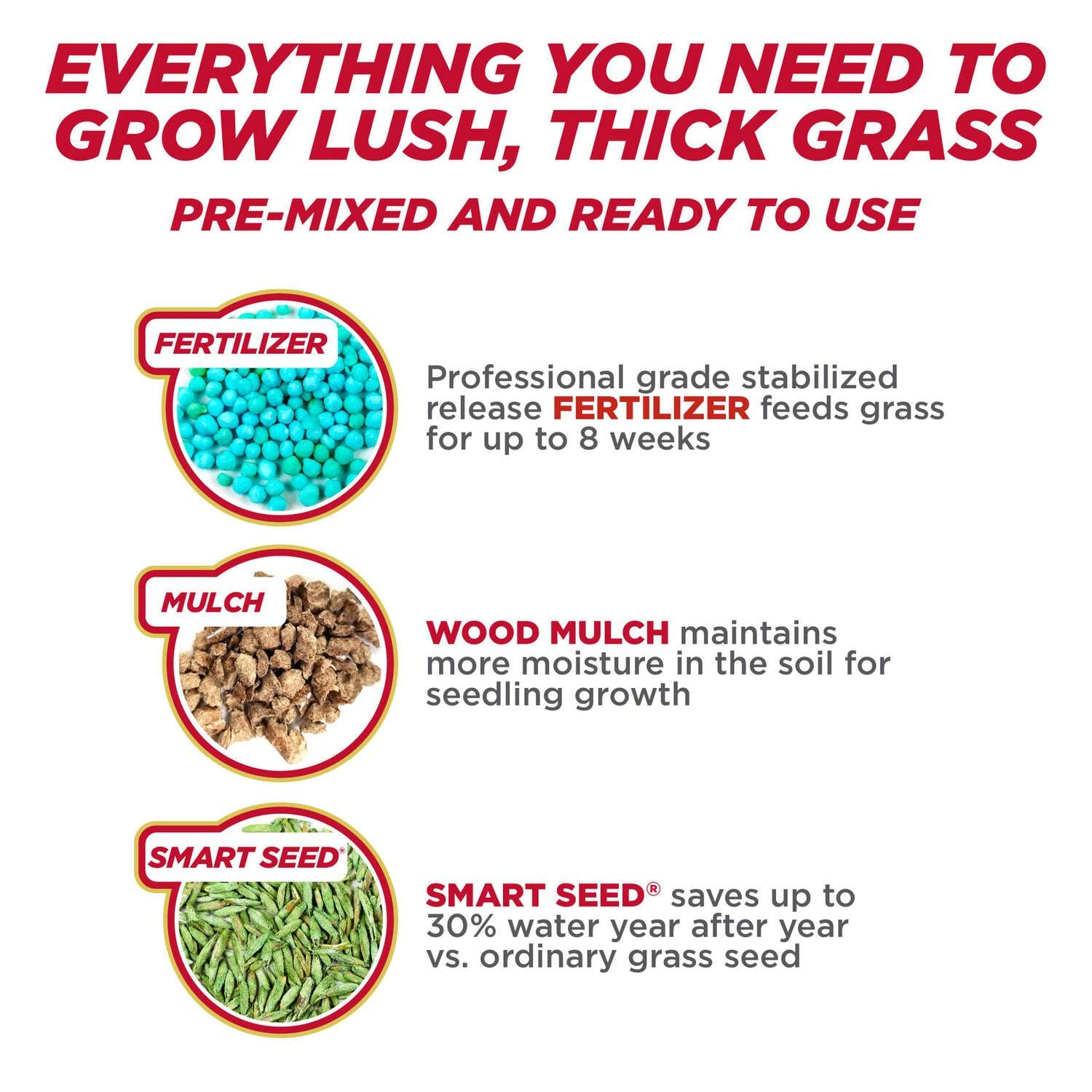 - Combination premium smart seed grass seed and professional-grade fertilizer and mulch