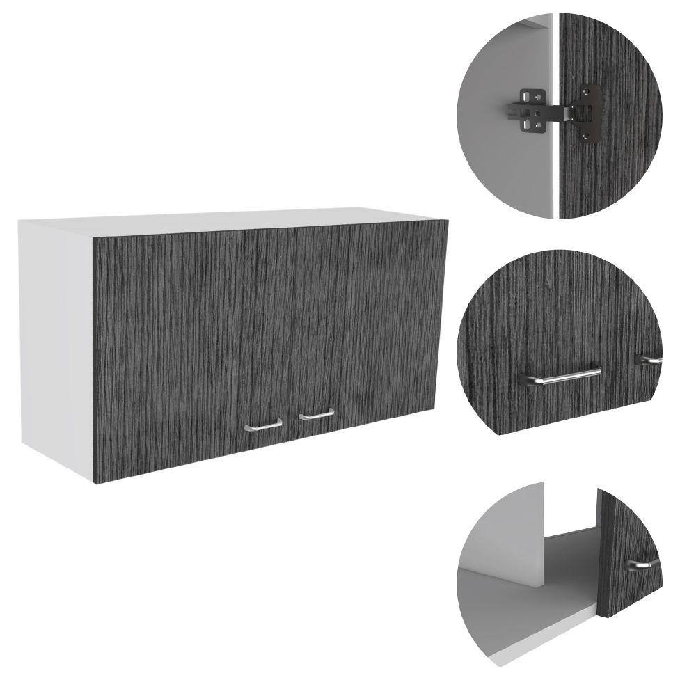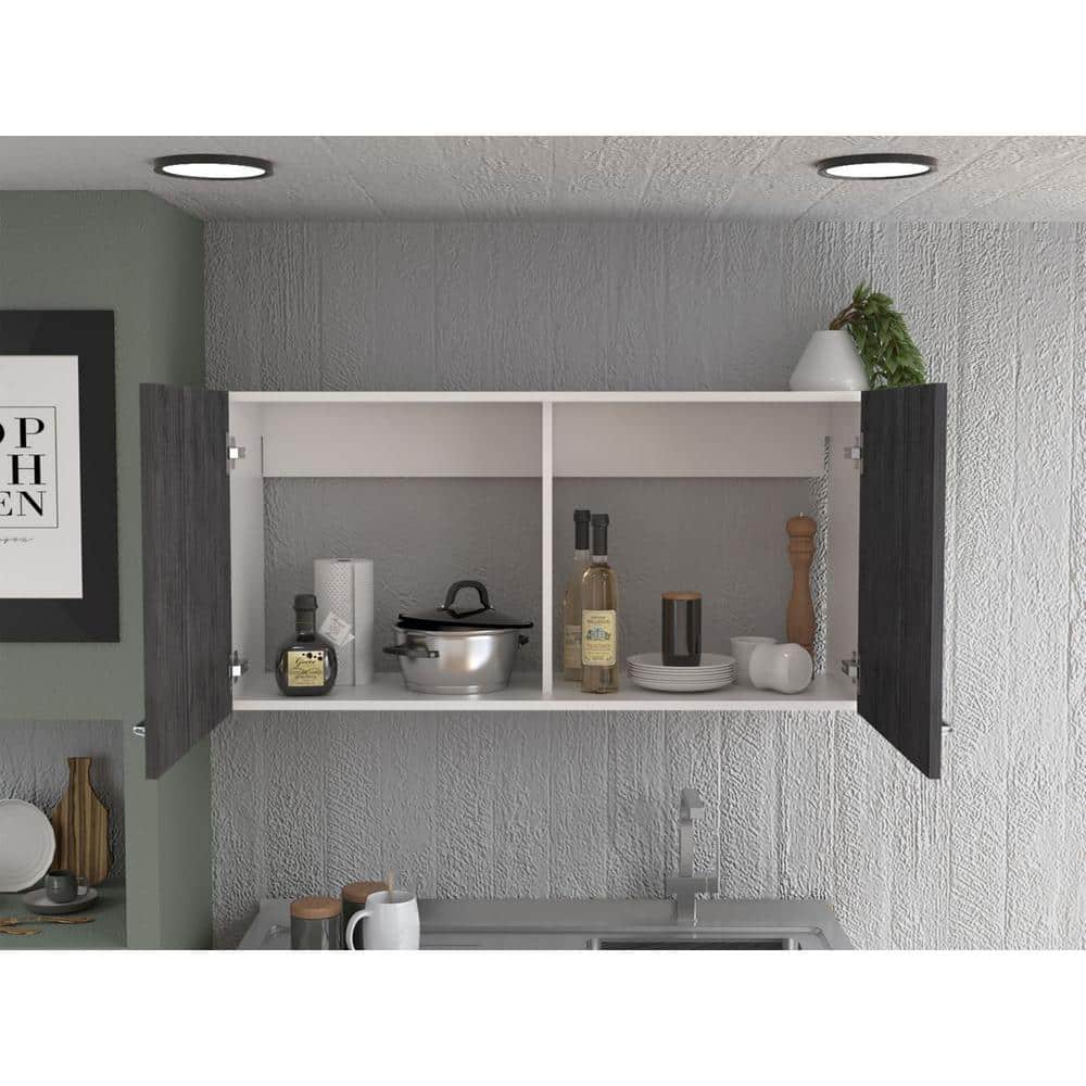 The Amucolo 39.3" Wall Kitchen Cabinet combines style and functionality with its modern white and smokey gray finish. Its spacious interior with soft close double doors provides ample storage for kitchen essentials, making it an elegant addition to any kitchen decor.