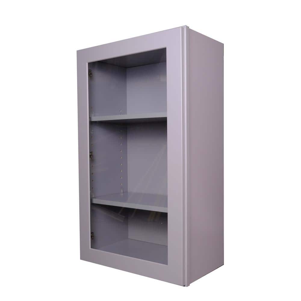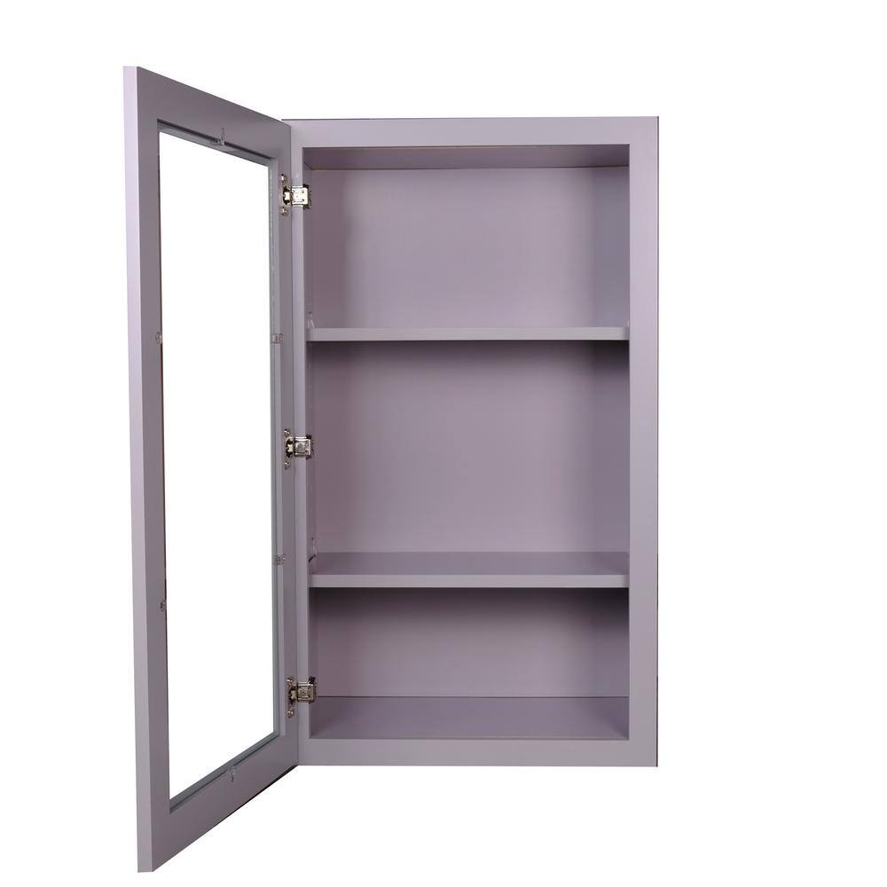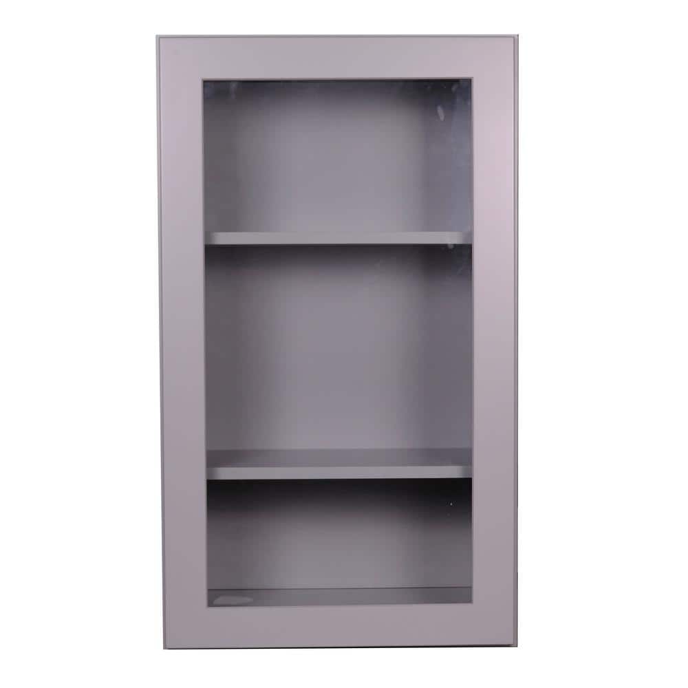 Bremen Cabinetry Bremen 21 in. W x 12 in. D x 30 in. H Gray Plywood Assembled Wall Glass-Door Kitchen Cabinet with Soft-Close