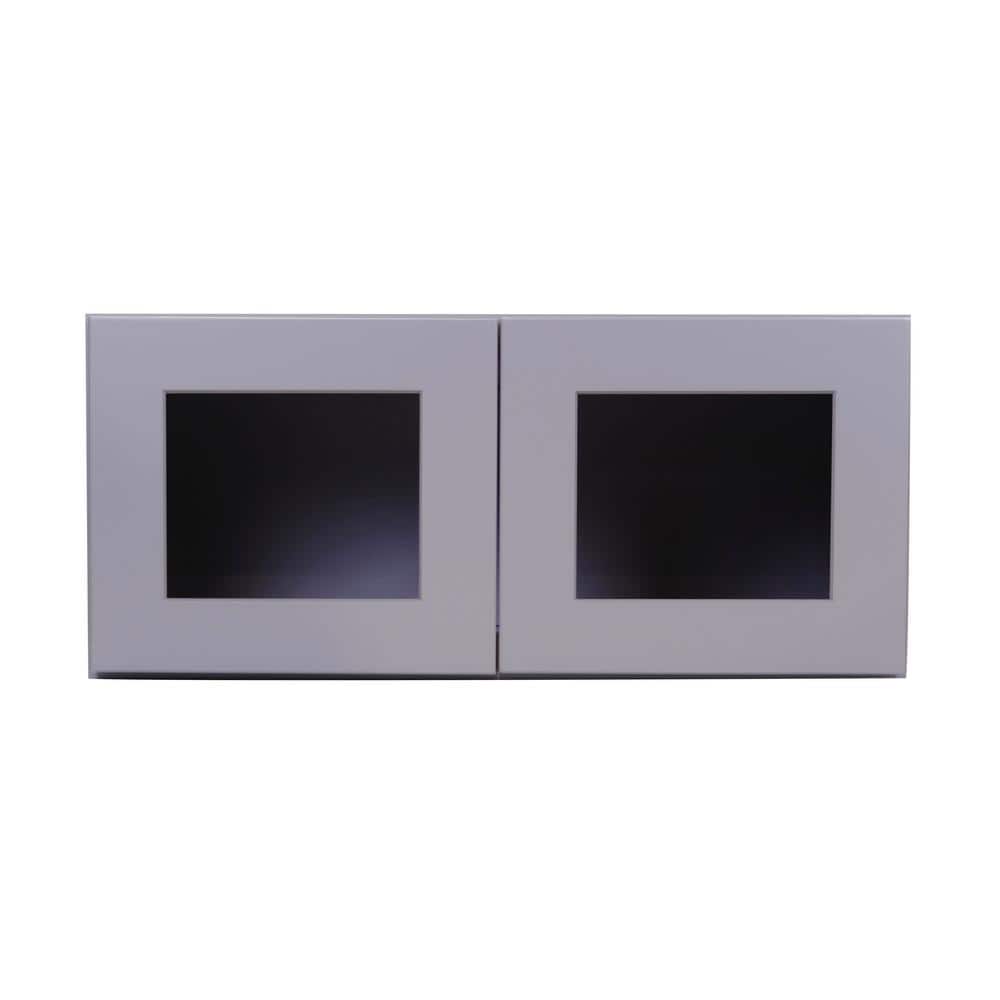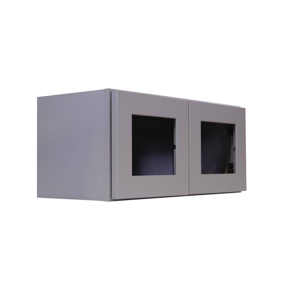 Bremen Cabinetry Bremen 27 in. W x 12 in. D x 12 in. H Gray Plywood Assembled Wall Top Glass-Door Kitchen Cabinet with Soft-Close