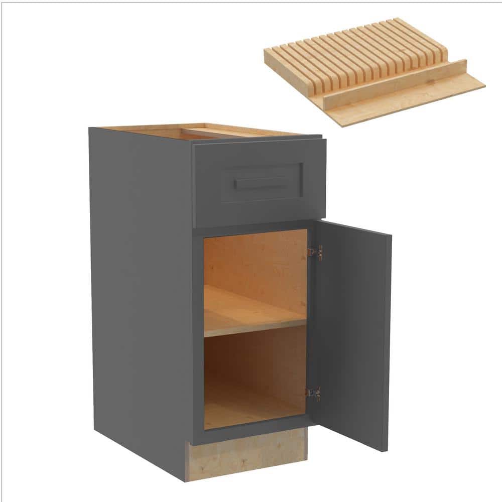 Grayson 15 in. W x 24 in. D x 34.5 in. H Assembled Plywood Base Kitchen Cabinet in Deep Onyx with Knife Block RH