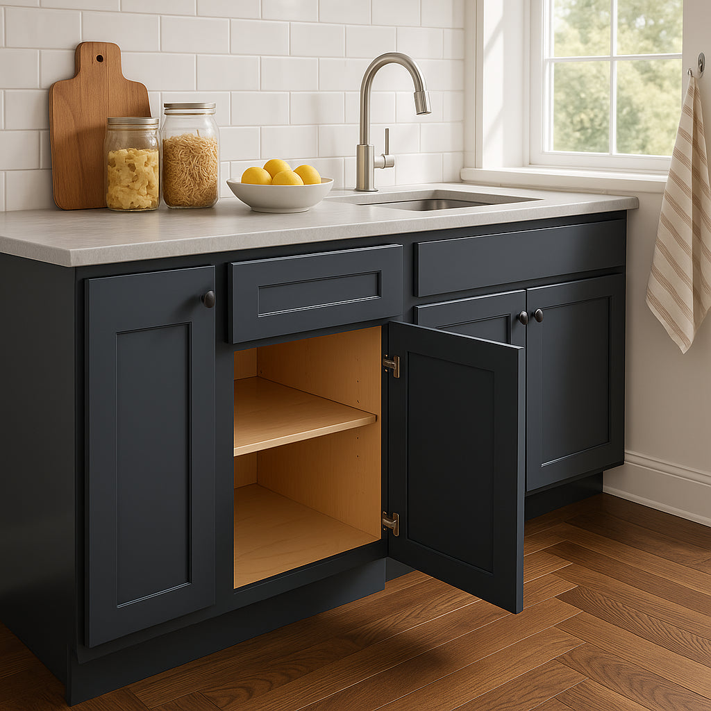 The Grayson Deep Onyx Kitchen Cabinet combines modern elegance with practical functionality. Featuring durable plywood construction, soft-close mechanisms, and a chic Deep Onyx finish, it offers both style and convenience for your kitchen.