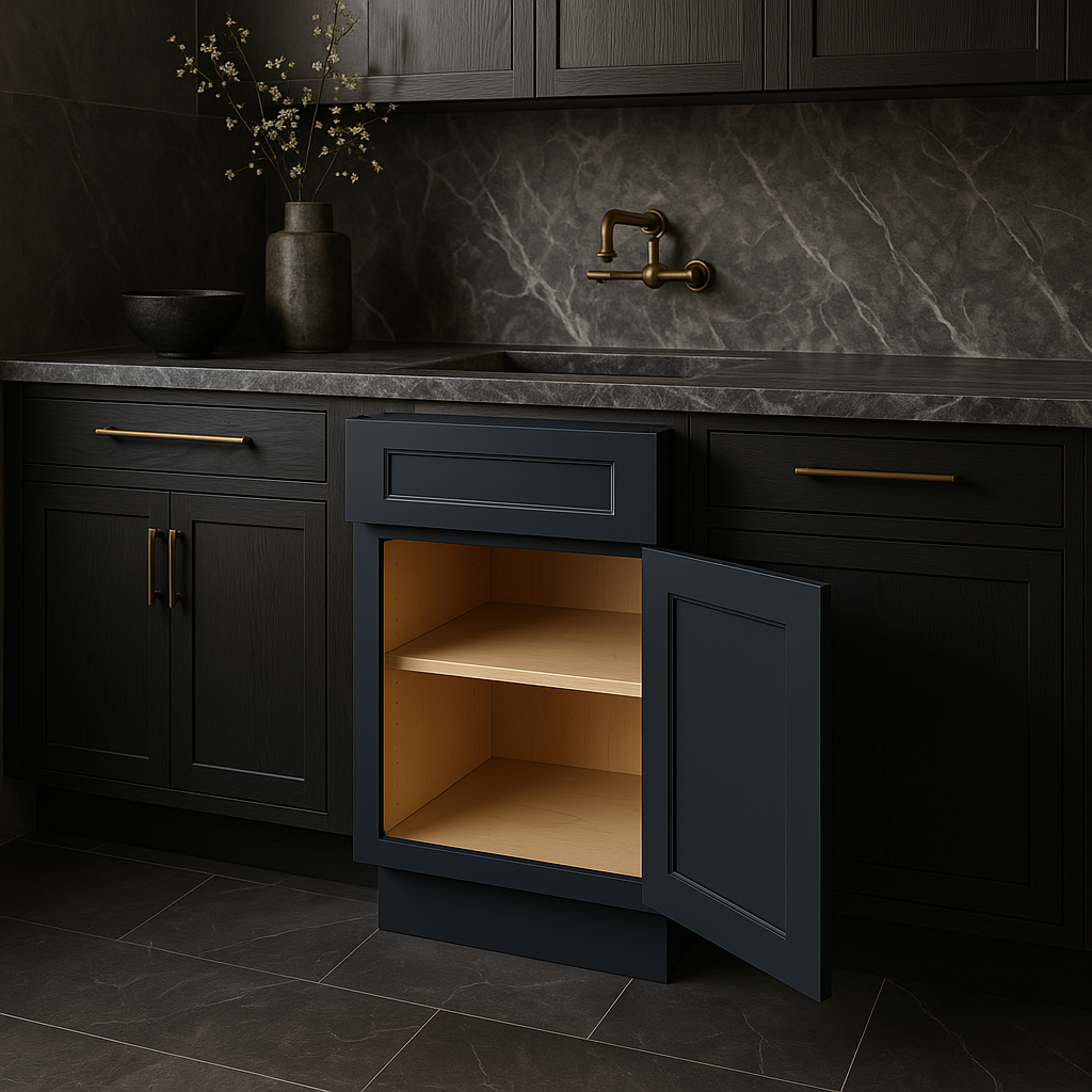 The Grayson Deep Onyx Kitchen Cabinet is a masterpiece of modern design, blending functionality with aesthetic appeal. Its transitional Shaker style and rich Deep Onyx finish create a sophisticated ambiance, perfect for contemporary or classic kitchens. Pair it with light countertops and metallic accents to highlight its bold color and clean lines. This cabinet is not just a storage solution but a statement piece that elevates your kitchen to a realm of refined luxury.