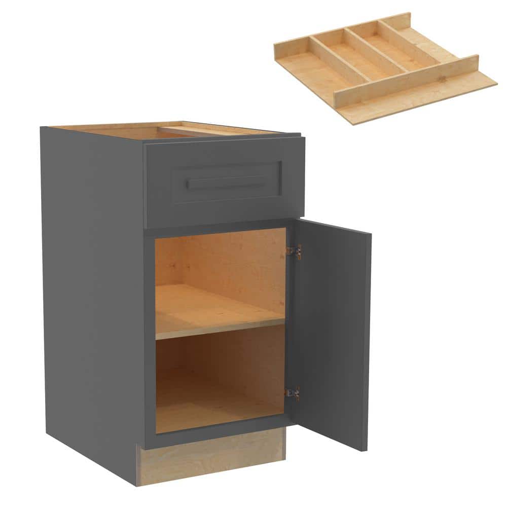 Grayson 18 in. W x 24 in. D x 34.5 in. H Assembled Plywood Base Kitchen Cabinet in Deep Onyx with Utility Soft Close RH