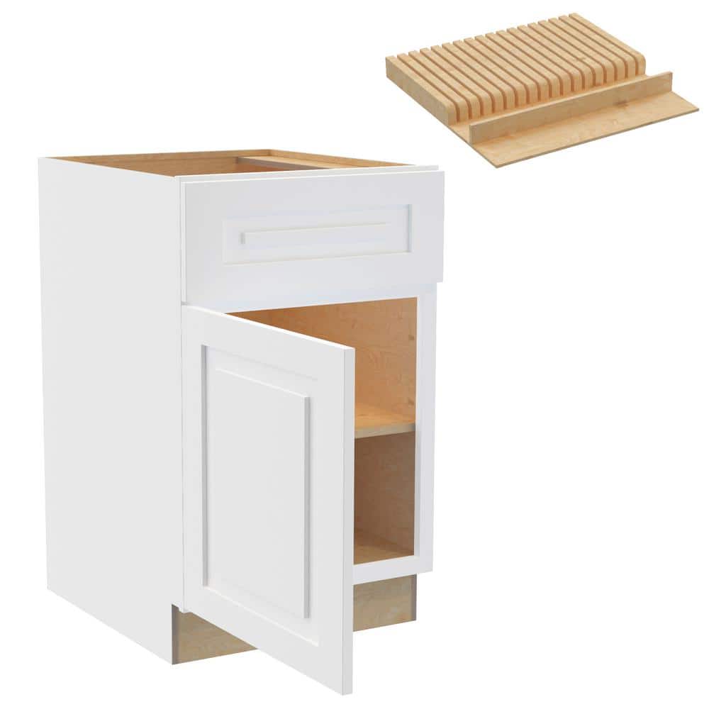Grayson 21 in. W x 24 in. D x 34.5 in. H Assembled Plywood Base Kitchen Cabinet in Pacific White with Knife Block LH
