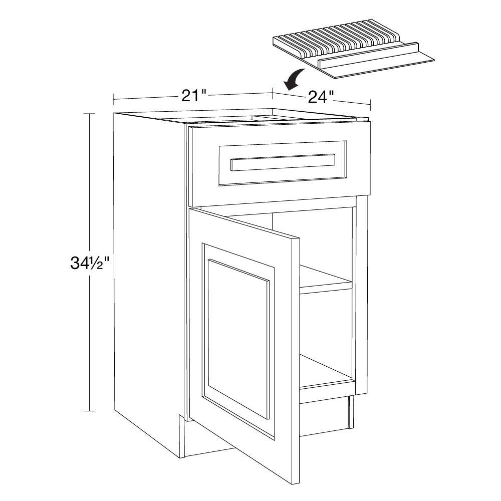 Elevate your kitchen with the Grayson 21" Assembled Base Kitchen Cabinet in Pacific White, featuring a sleek shaker style. This cabinet combines durability with sophistication, crafted from CARB compliant all-plywood and equipped with a convenient knife block insert. Its soft close doors and solid hardwood drawer promise elegant, noise-free operation.
