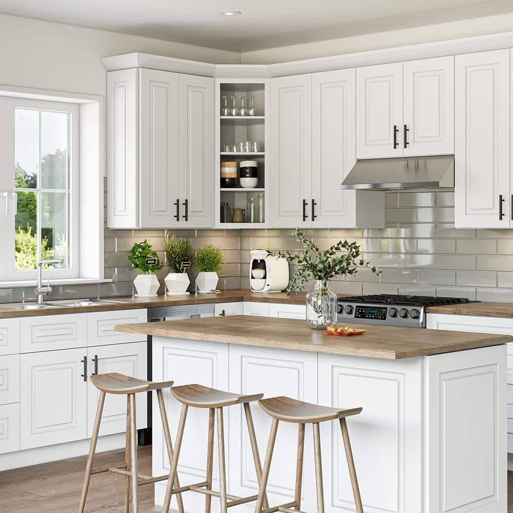 • Design: Clean Pacific White finish with shaker-style raised panels