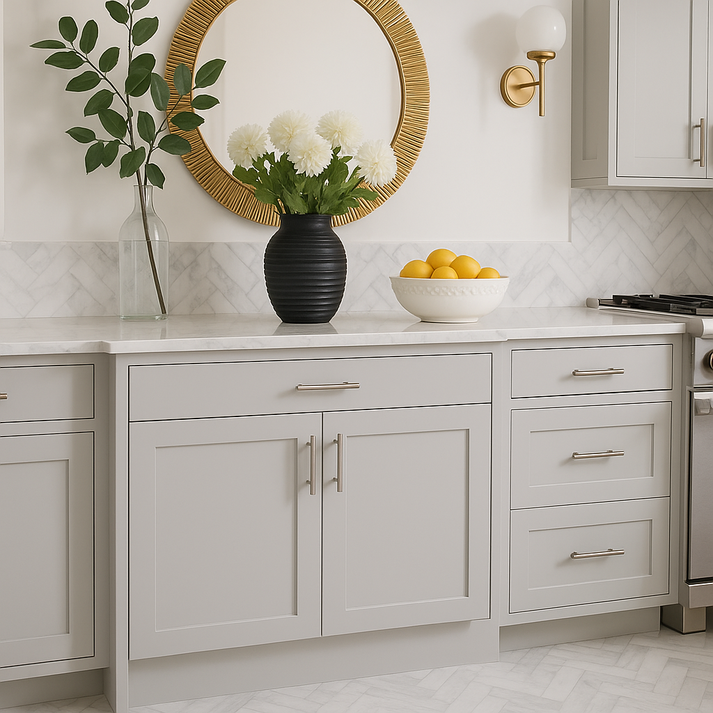- Elegant Design: Traditional shaker styling in a light Dove Gray finish.
