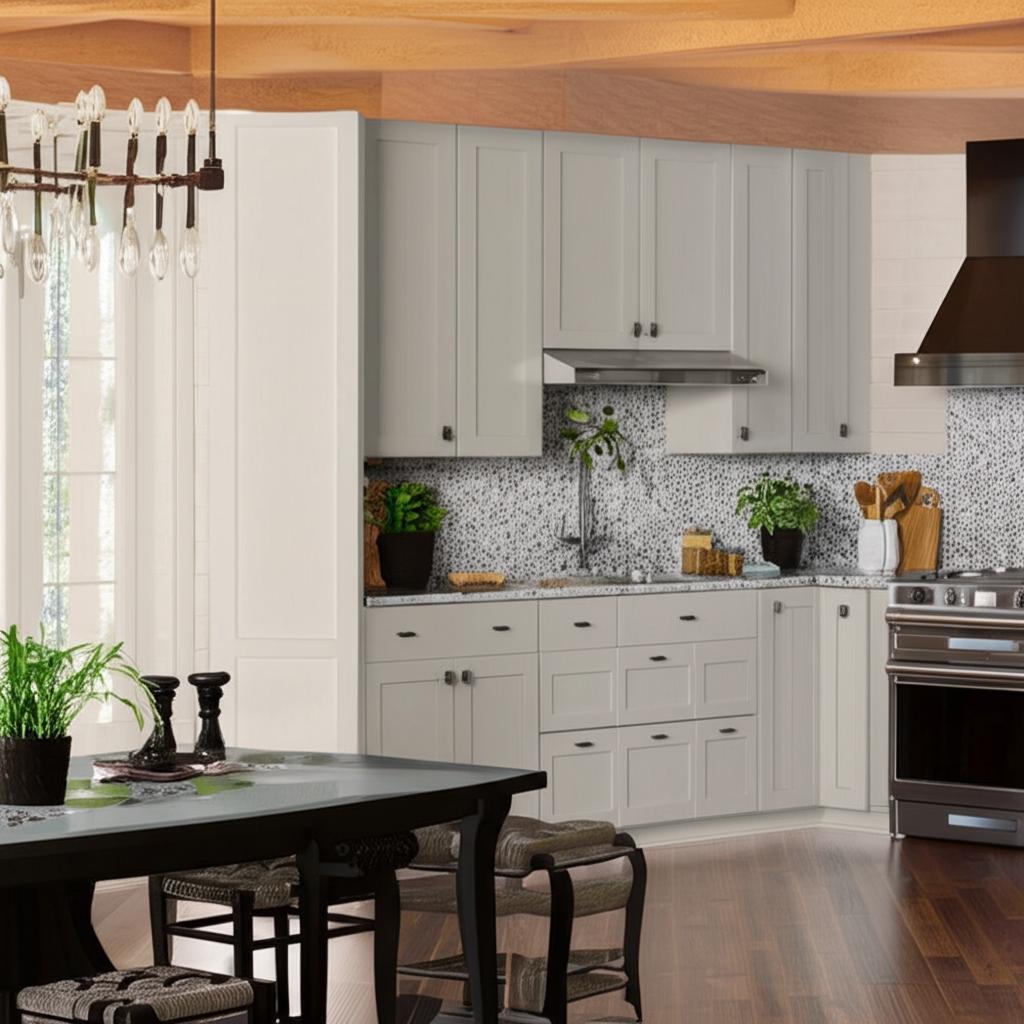 Upgrade your kitchen with the Cambridge Gray Shaker Cabinet—order now for a blend of style and functionality!