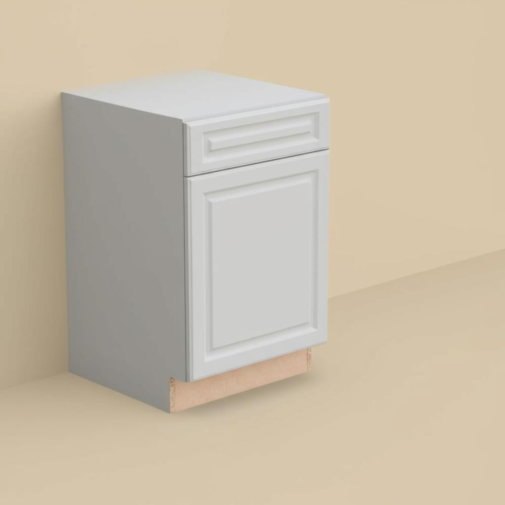 The Hampton Bay Designer Series Elgin Base Kitchen Cabinet in Heron Gray combines elegance and functionality with its soft-close doors, durable hardwood construction, and adjustable storage. Its frameless design and chic finish make it a perfect addition to any kitchen.