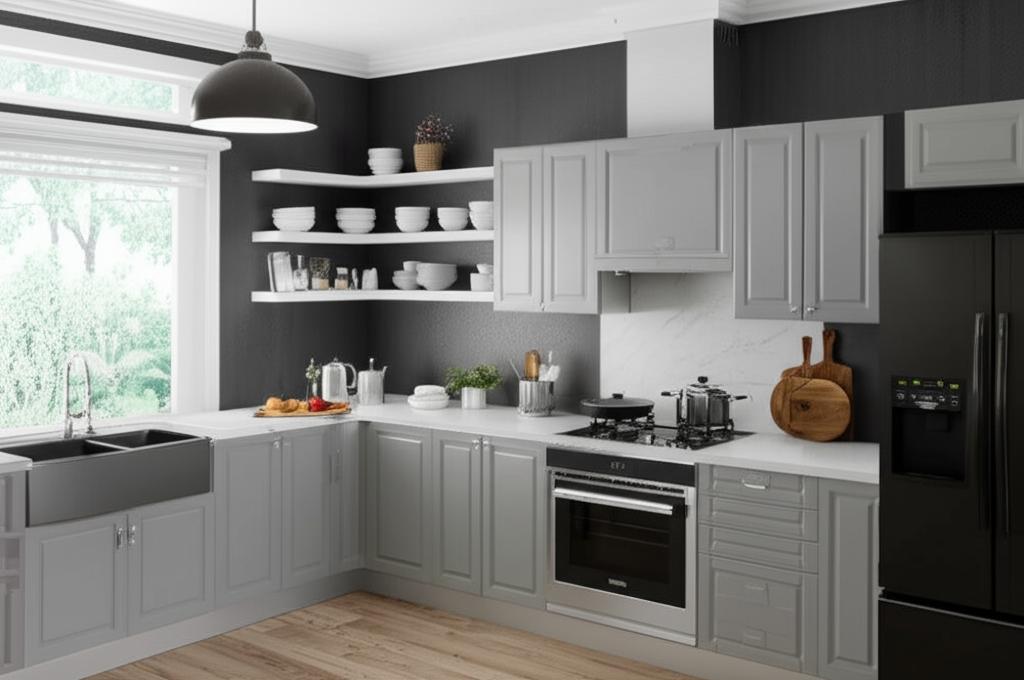 • Stylish Finish: Heron Gray thermofoil finish is easy to clean and maintain.