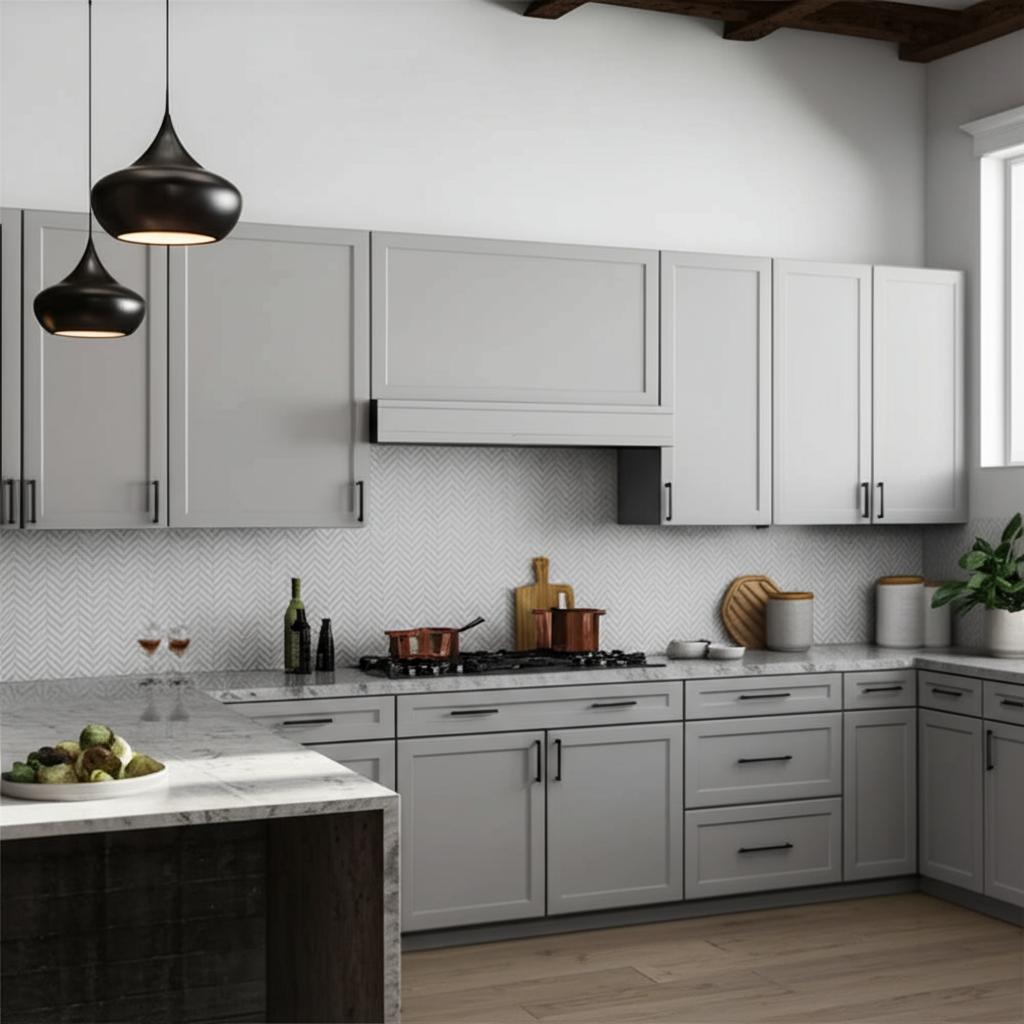 • Stylish Finish: Heron Gray rigid thermofoil provides a contemporary look.
