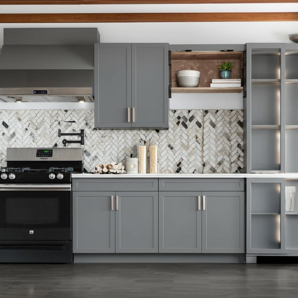 - Storm Gray Finish: A contemporary gray hue that adds sophistication to any kitchen decor.