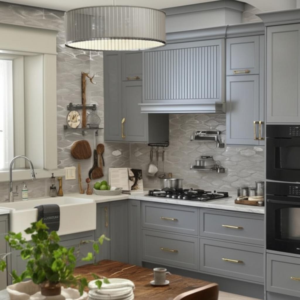 - Transitional Aesthetic: Shaker style doors in storm gray finish.