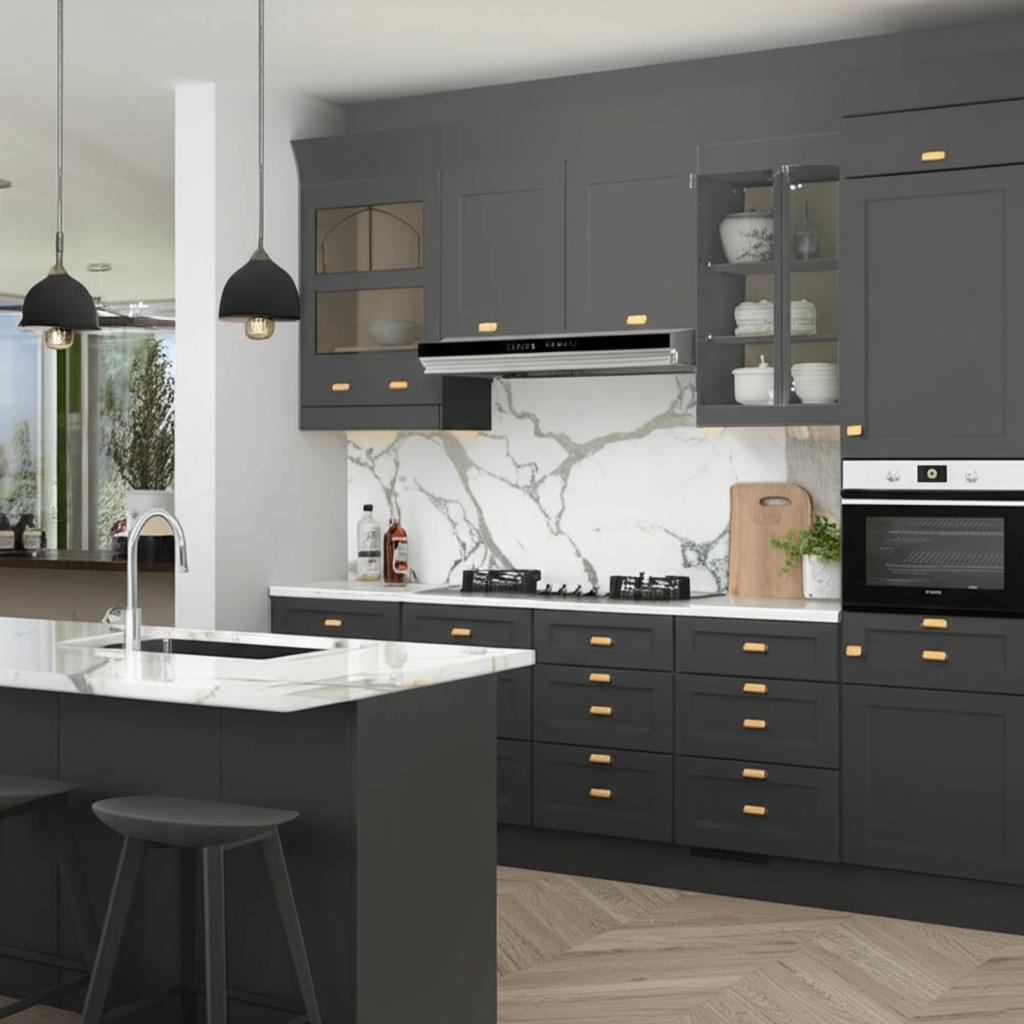 - Stylish Finish: Storm gray thermofoil finish is easy to clean and maintain.