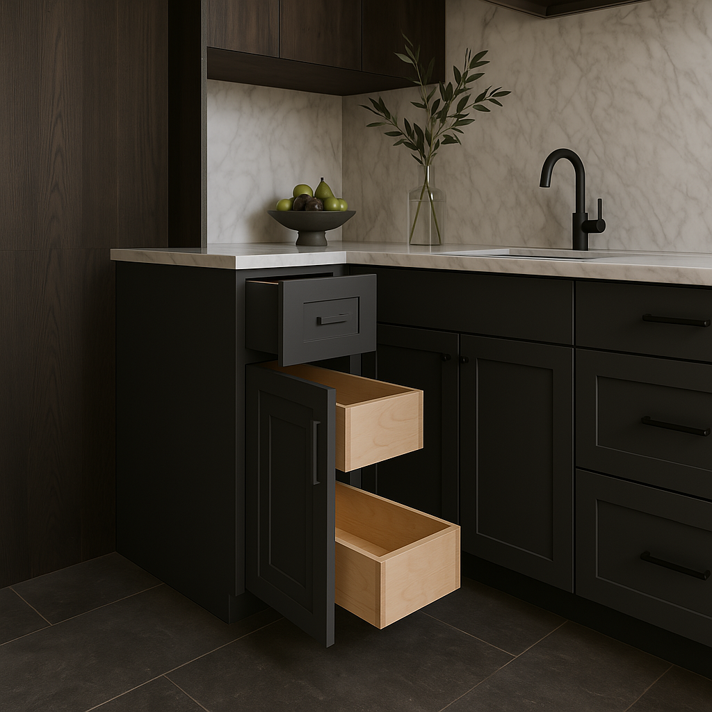 Transform your kitchen with the Grayson Deep Onyx Base Cabinet—order now to experience elegance in every detail.