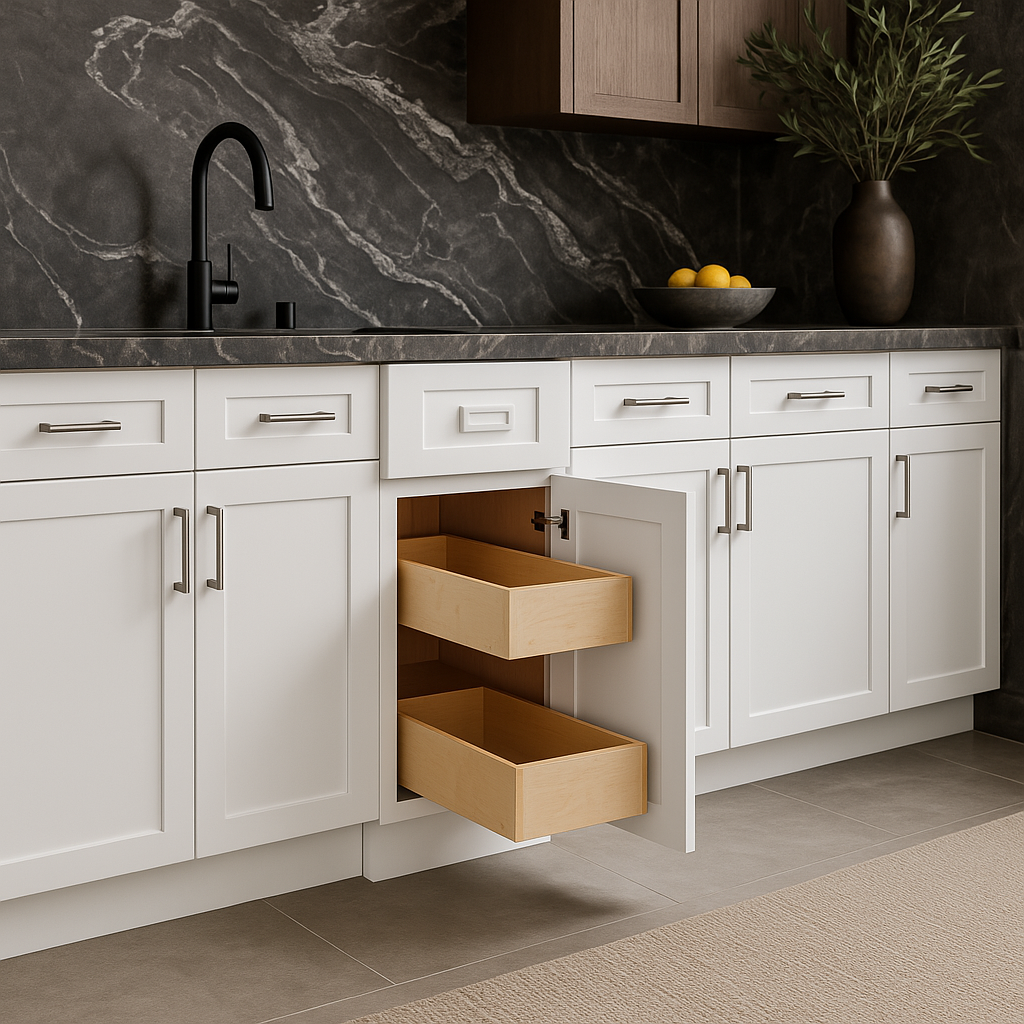 • Soft-Close Mechanism: Includes soft-close doors and drawers for quiet and smooth operation.