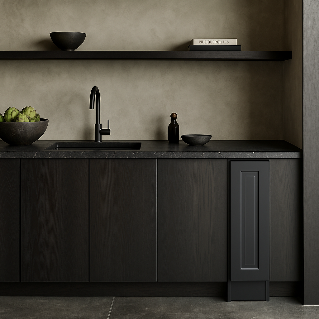 The Grayson Deep Onyx Cabinet transforms any kitchen into an opulent, sophisticated space that whispers luxury. Its dramatic dark tone and seamless Shaker style harmonize perfectly with a backsplash of bright marble or gleaming stainless steel accents. Imagine these cabinets as the elegant backbone of your culinary area, marrying form with practical function. Let this piece be your gateway to lavish living, infusing your kitchen with modern grace.