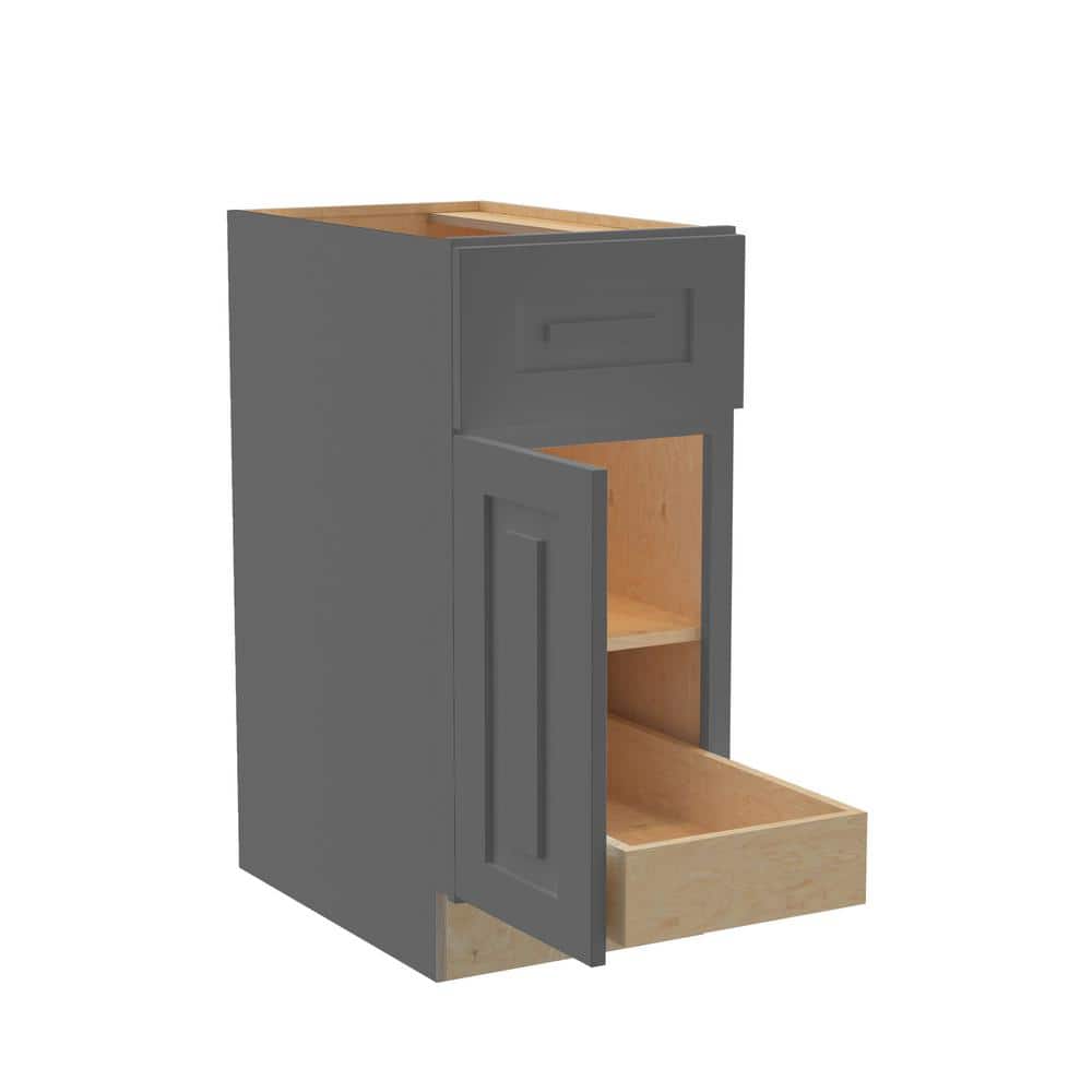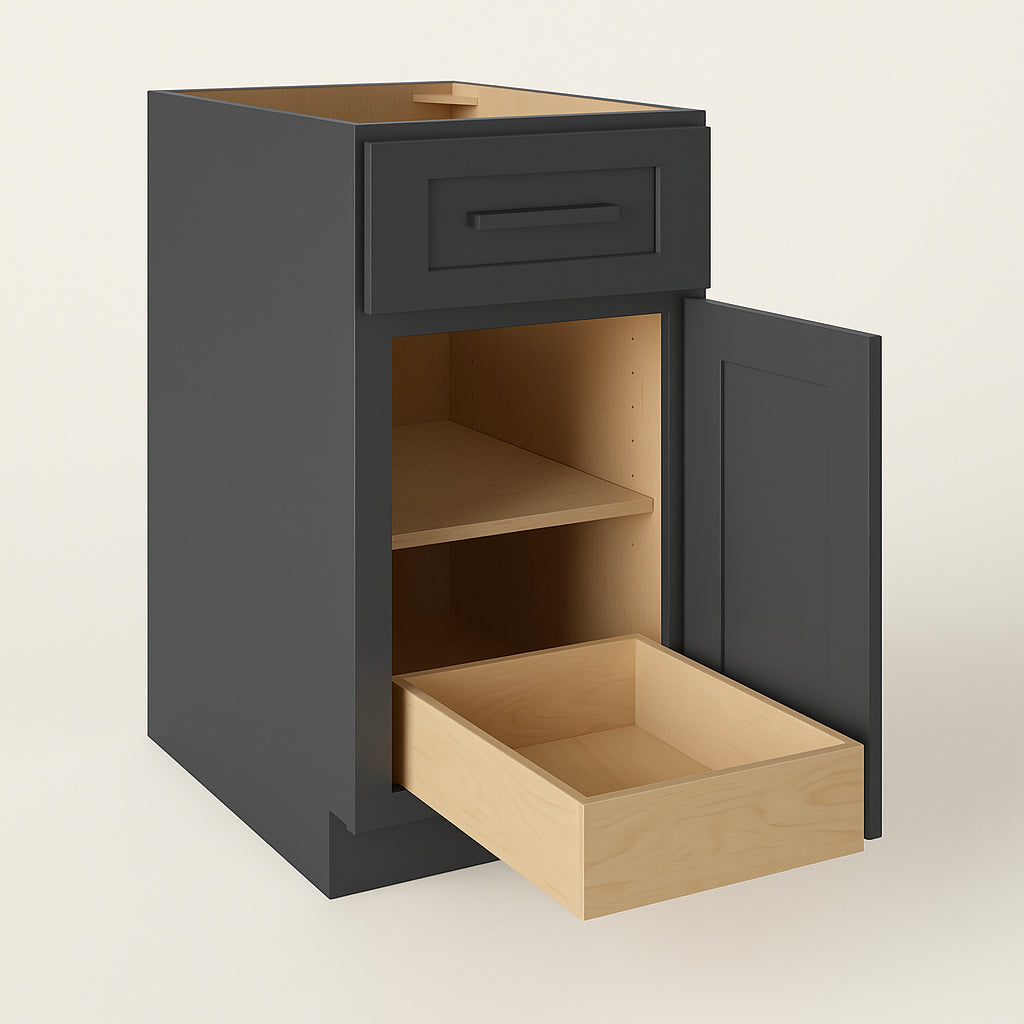 The Grayson Deep Onyx Base Kitchen Cabinet combines durable plywood construction with a sleek Transitional Shaker design. Featuring soft-close doors and drawers, adjustable shelves, and a deep onyx finish, it offers both style and functionality for your kitchen.
