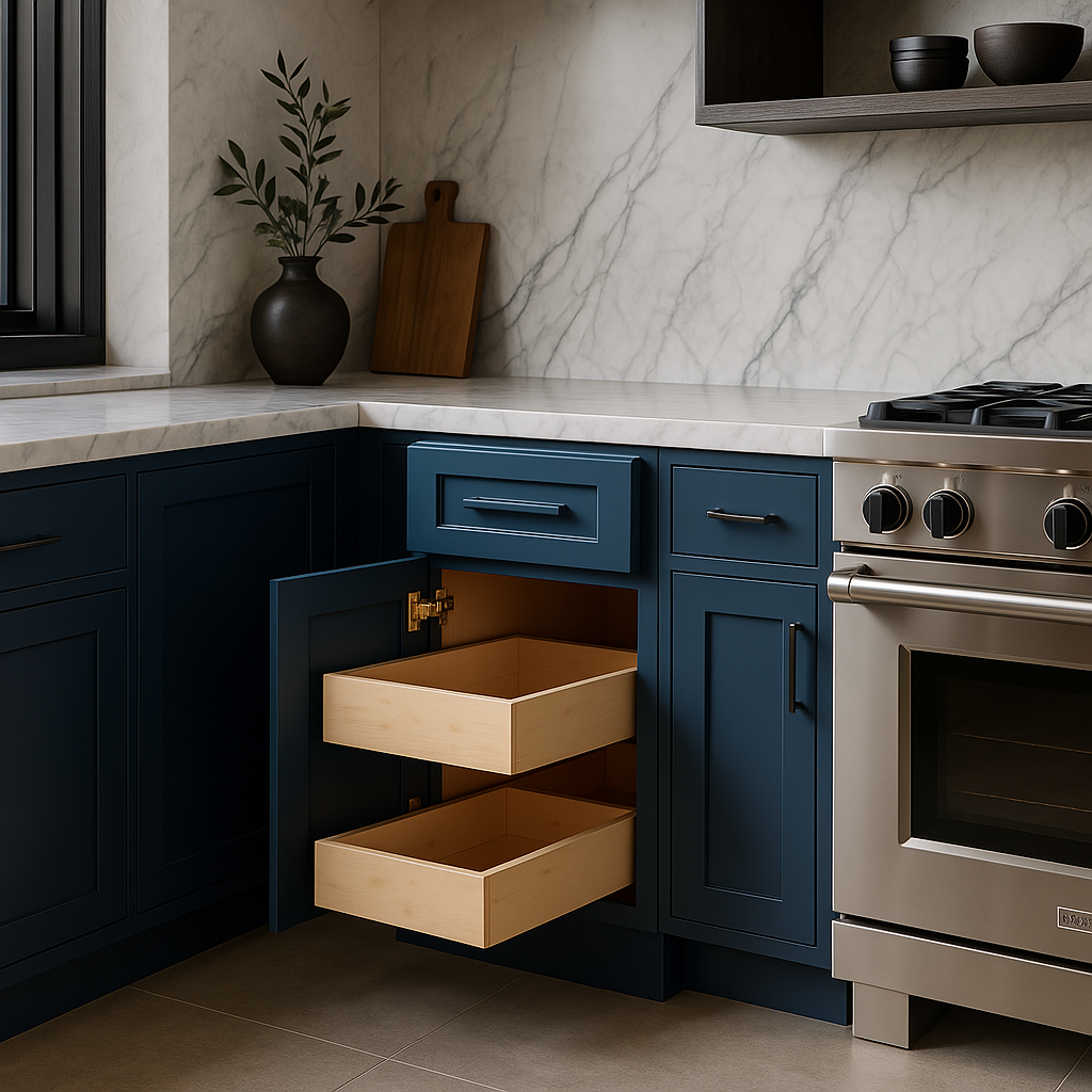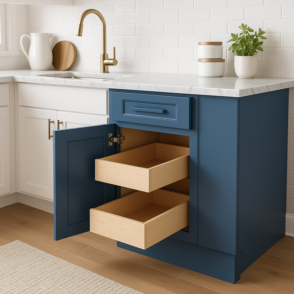 - Functional Storage: Includes 2 soft-close roll-out trays and a utensil tray insert for organized storage.