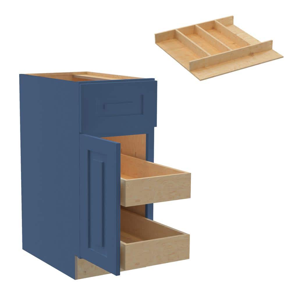 The Grayson Mythic Blue Base Kitchen Cabinet combines style and functionality with its durable plywood construction, soft-close technology, and elegant shaker design. Perfect for organizing your kitchen with its roll-out trays and utensil insert.