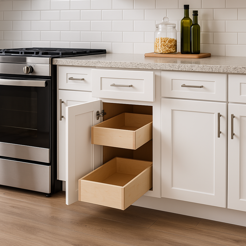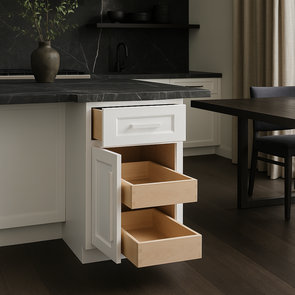 - Enhanced Accessibility: Equipped with two hardwood dovetail rollout trays for easy access to stored items.