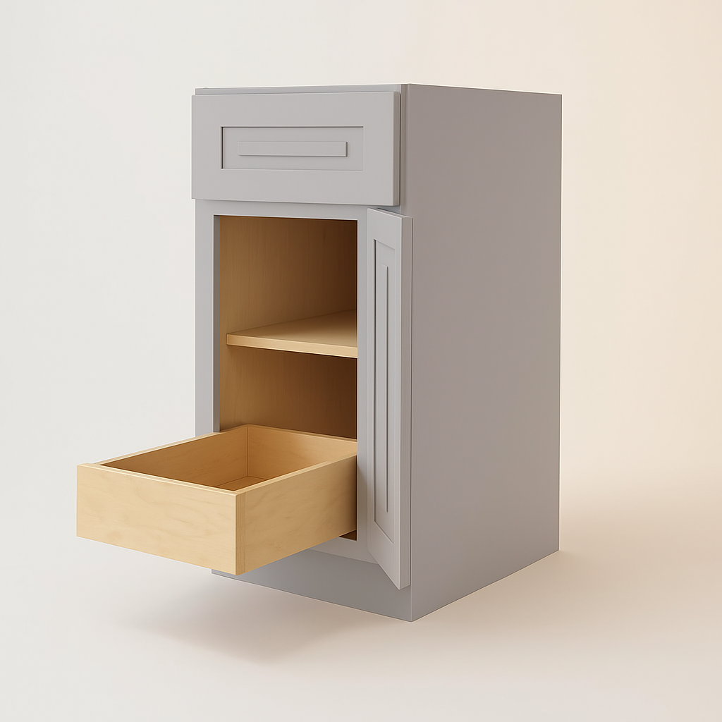 The Grayson Pearl Gray Kitchen Cabinet combines premium plywood construction with a durable painted finish, offering soft-close drawers and versatile storage solutions. Its transitional shaker style and elegant Pearl Gray finish make it a perfect addition to modern kitchens.